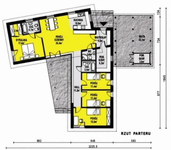 Dach: pulpitowy nachylenie 7 stopniRzuty