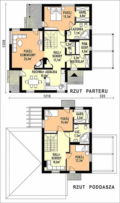- Wysokość domu7.53 m
