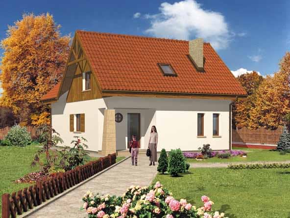 Ściany zewnętrzne: gr. 36,5 cm z bloczków YTONG; strop: żelbetowy; schody: drewniane; dach: dwuspadowy o nachyleniu 43 stopni, więźba drewniana, krycie dachówkąRzuty