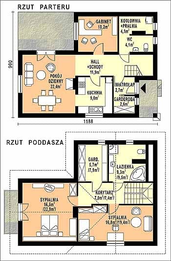 - KondygnacjeParterowy, z poddaszem