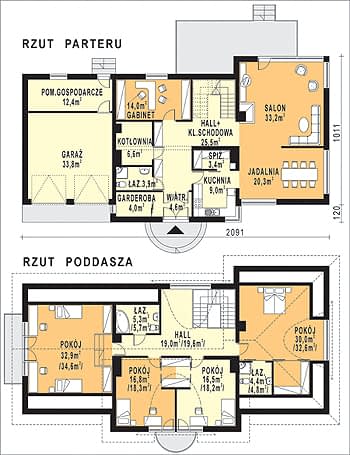 - KondygnacjeParterowy, z poddaszem