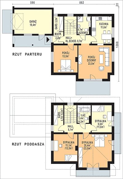 - KondygnacjeParterowy, z poddaszem