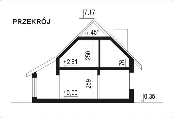 - Kąt nach. dachu45°