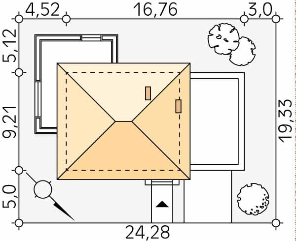- Minimalne wymiary działki19.33 x 24.28m