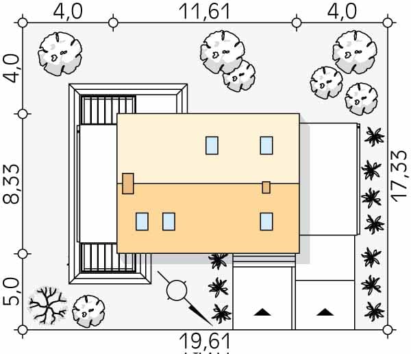 - Minimalne wymiary działki17.33 x 19.61m