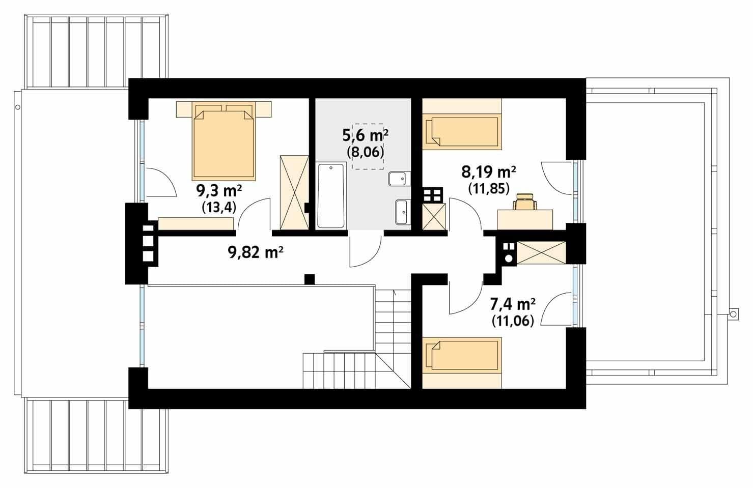 - rzuty poziome poszczególnych kondygnacji (parter, poddasze lub piętro),