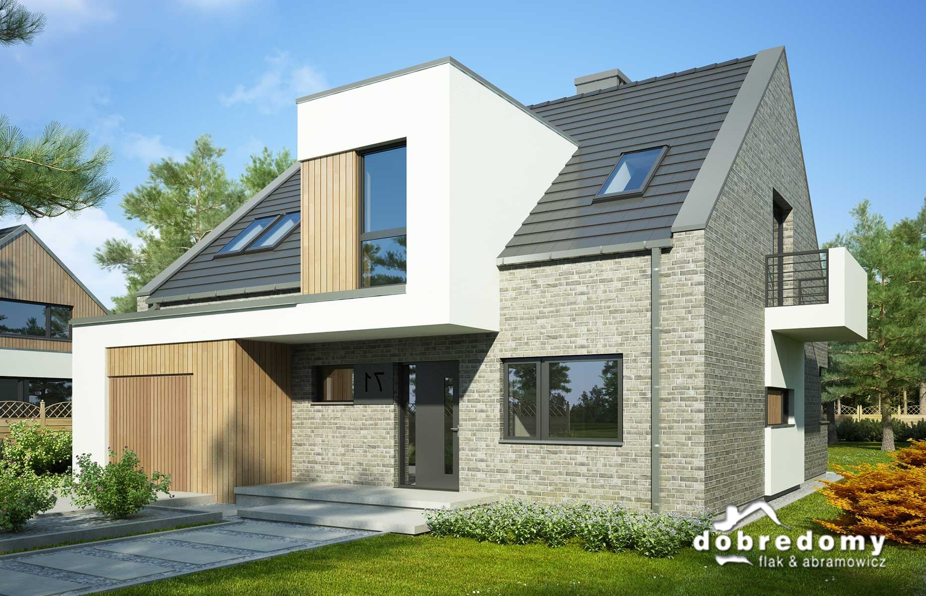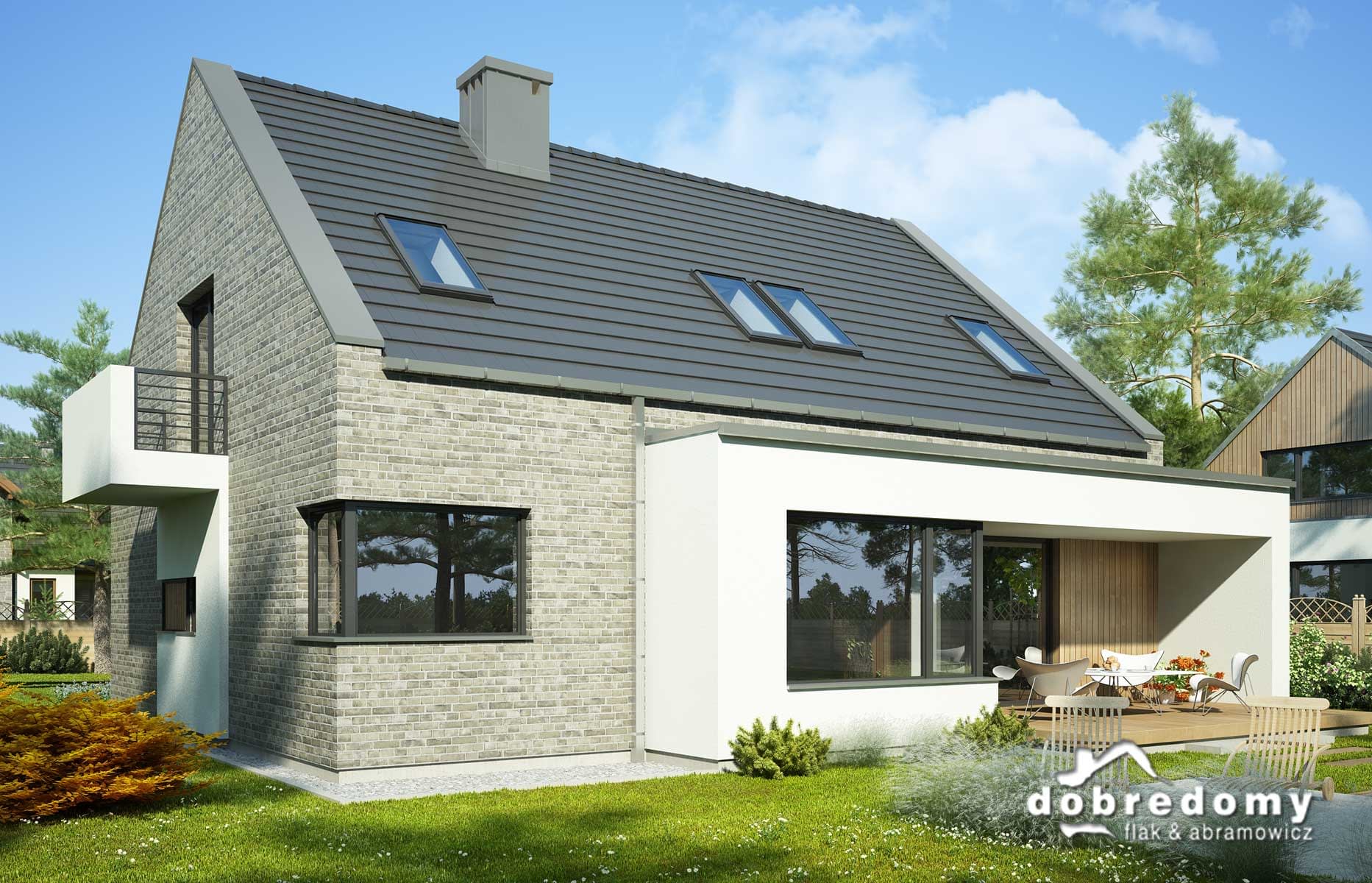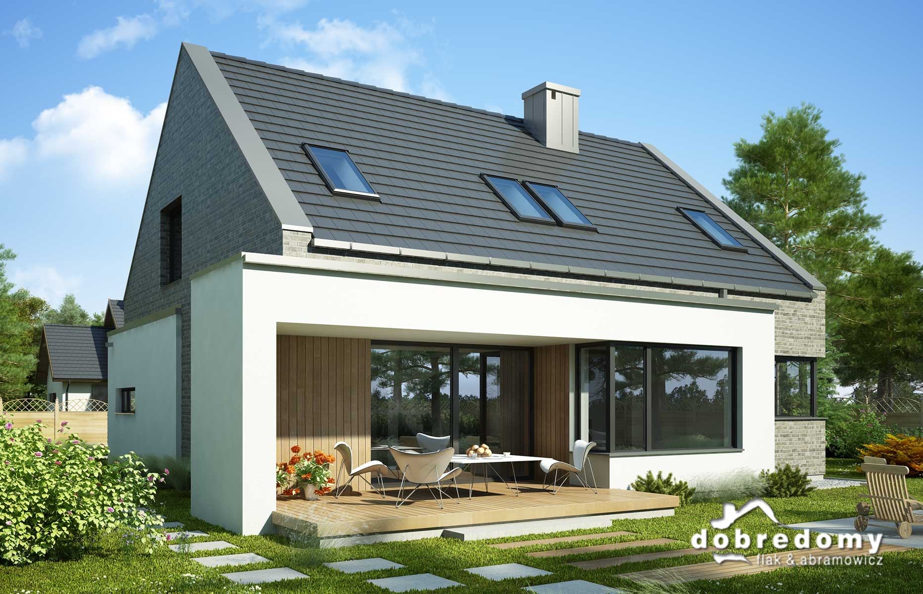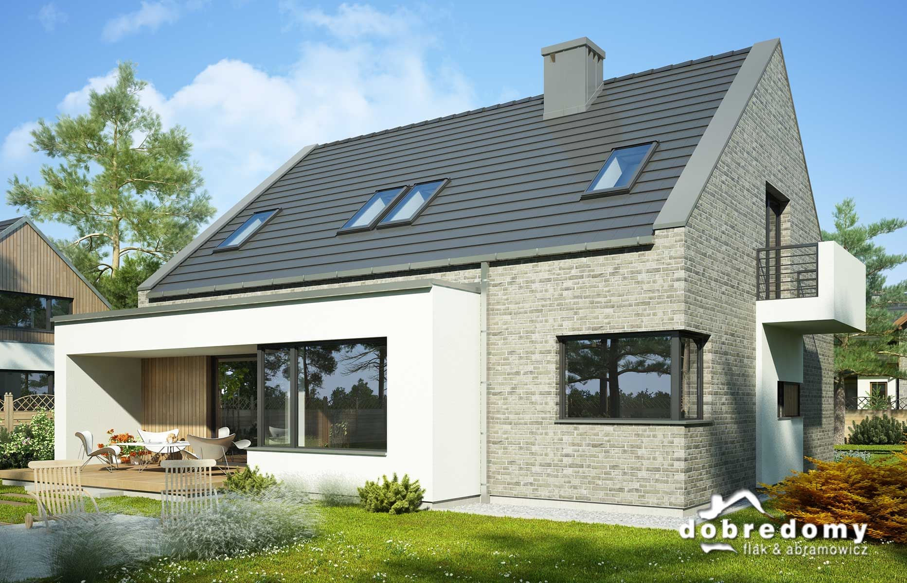 Dom z poddaszem użytkowym, niepodpiwniczony, przeznaczony dla 4-5 osobowej rodziny. Na parterze znajduje się część dzienna i gospodarcza, na poddaszu trzy sypialnie, łazienka i pralnia. Atrakcją domu mogą stać się otwarte na jadalnię i pokój dzienny schody. Centralnie zlokalizowany kominek umożliwia rozprowadzenie ciepła po całym domu.