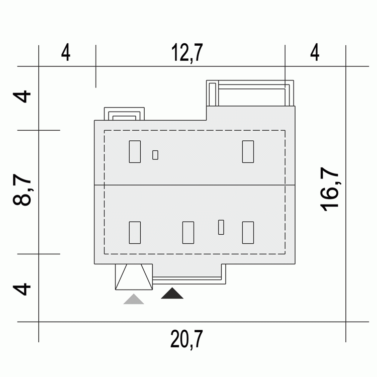 - Minimalne wymiary działki16.7 x 20.7m