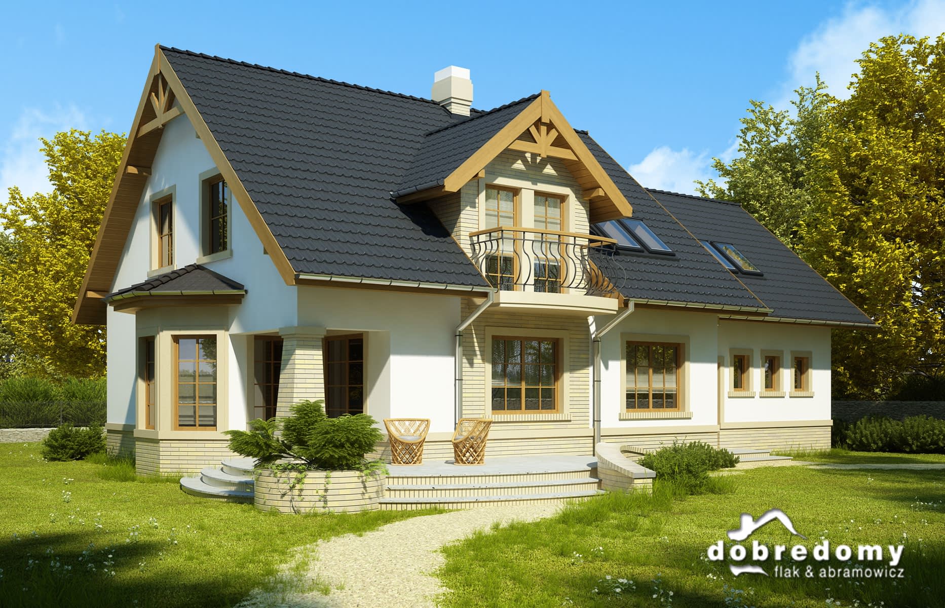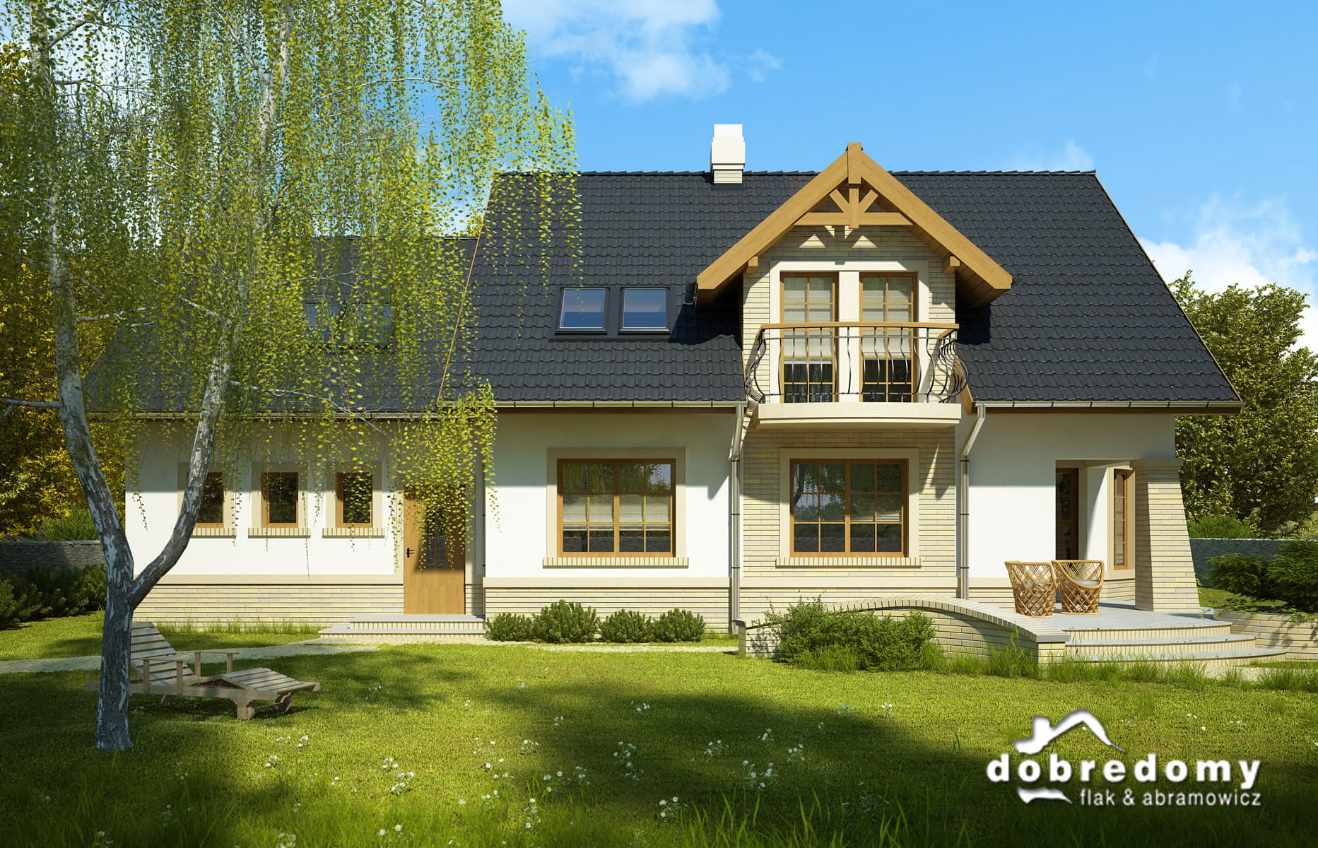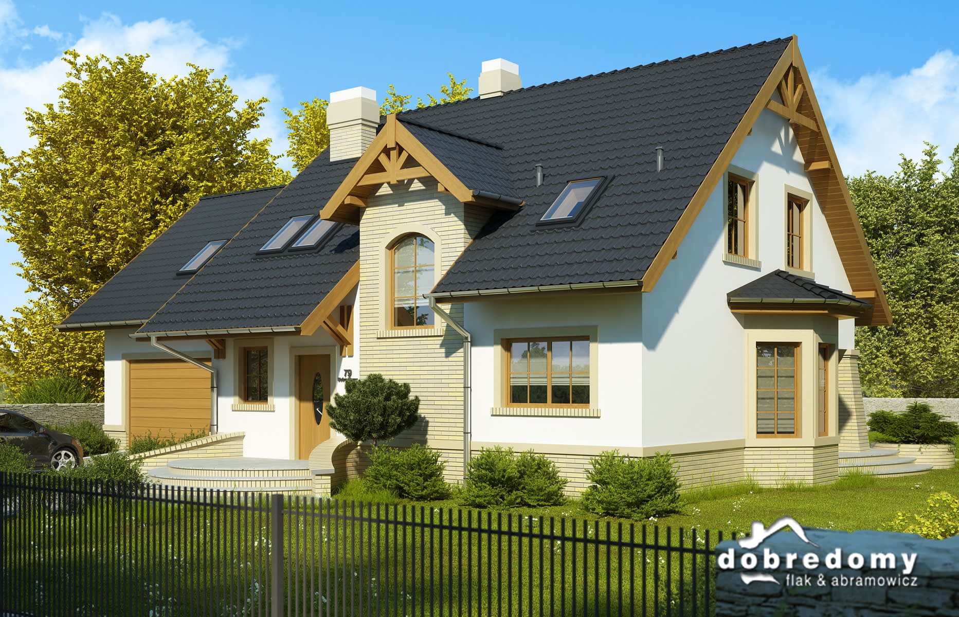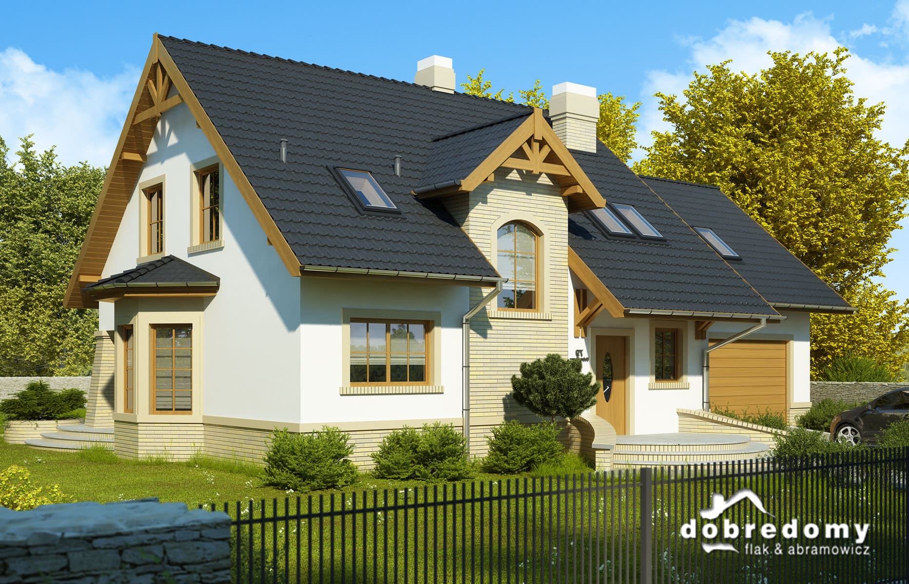 Elewacje pokryte tynkiem strukturalnym w systemie ociepleń Termo Organika oraz w części okładziną klinkierową. Pokrycie dachu - dachówka ceramiczna lub cementowa CREATON.