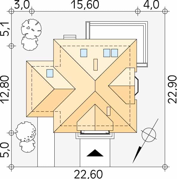 - Minimalne wymiary działki22.9 x 22.6m