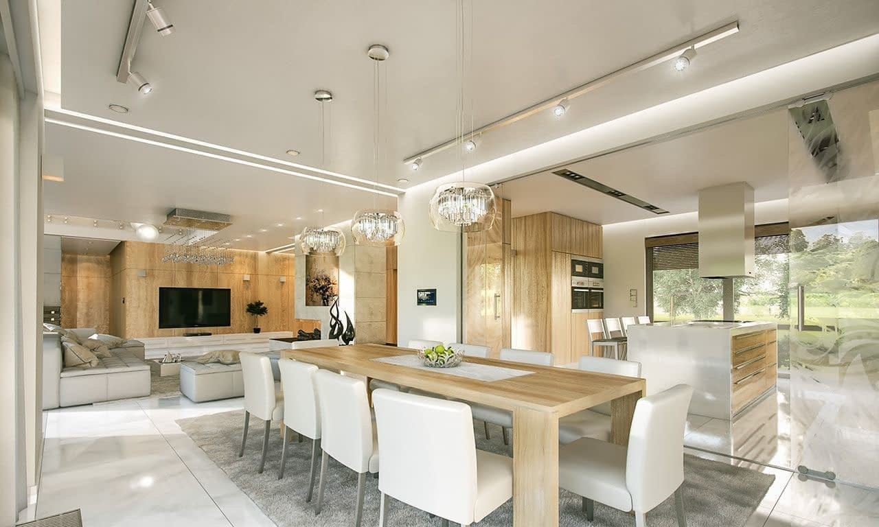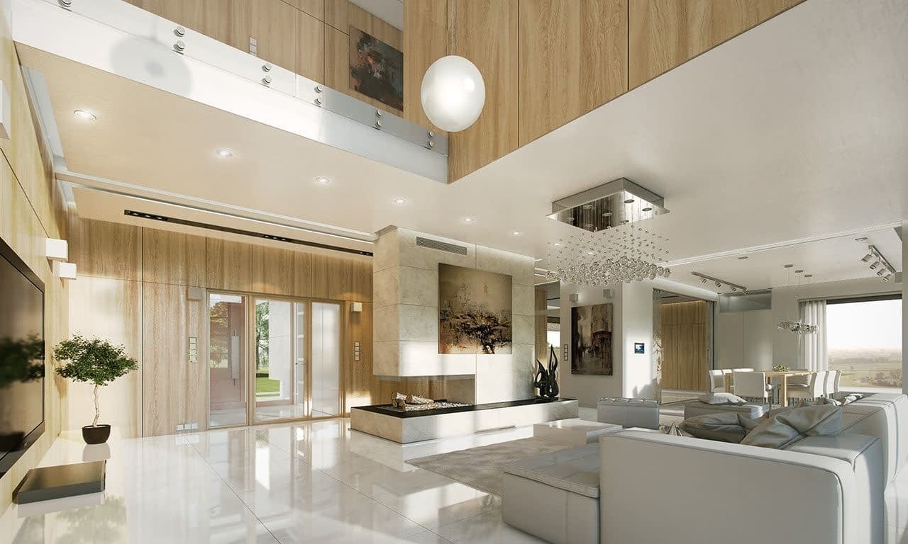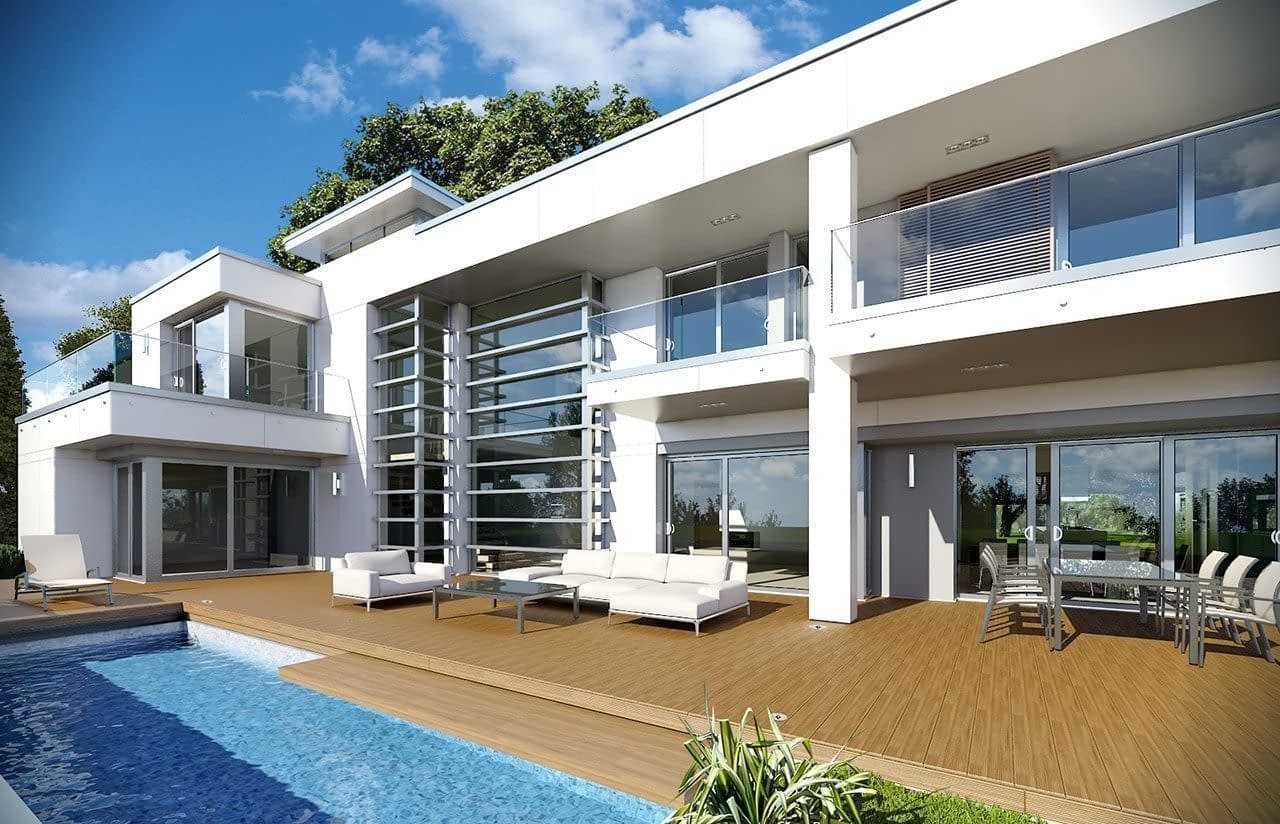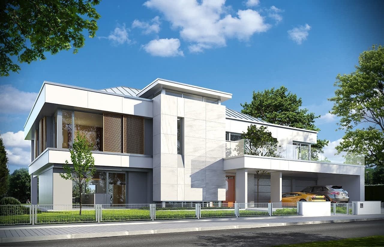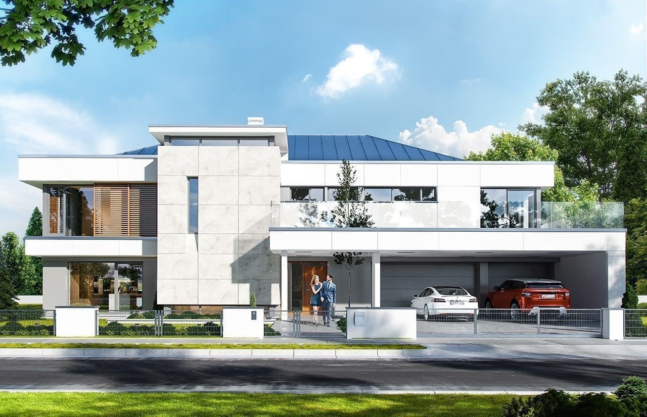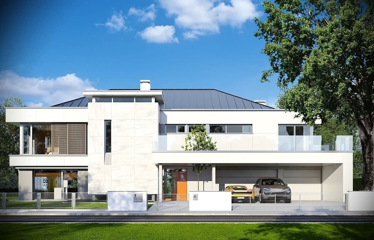 Projekt domu Willa Floryda to luksusowa rezydencja dla 4-7 osobowej rodziny. Bardzo komfortowa, wygodna piętrowa Willa Floryda przeznaczona jest na podmiejską ładną działkę. Architektura Willi Florydy łączy w sobie nowoczesną formę i funkcjonalność rozwiązań. Zarówno okazały wygląd zewnętrzny, jak i obszerne reprezentacyjne wnętrze mają za zadanie podkreślać status i dobry gust właścicieli.Bryła budynku Willa FlorydaFront domu Willa Floryda został ozdobiony kamienną dwukondygnacyjną ścianą. Wejście szerokimi drzwiami wiedzie przez zadaszony podest wprost do przeszklonego przedsionka, holu i salonu z pięknym wysokim oknem z widokiem na ogród. Osoba wchodząca do domu ma to wielkie okno i wysoki salon przed sobą. W elewacji frontowej sprytnie ukryto drzwi do wielkiego garażu pod dachem zadaszonych miejsc parkingowych. Strona ogrodowa domu Willa Floryda to duże przeszklenia, elewacja podzielona na poziome pasy, oraz wiszące balkony i tarasy - wszystko otwierające wnętrze domu na otaczający ogród.Willa Floryda wnętrzeWe wnętrzu domy Willa Floryda zaprojektowano na parterze piękną reprezentacyjną przestrzeń dzienną, z połączonych pomieszczeń holu, salonu, jadalni, pięknej klatki schodowej, oraz dużej kuchni. W projekcie Willa Floryda na parterze znajdują się dodatkowe pomieszczenia gospodarcze, techniczne, oraz potrójny garaż i gabinet. Piętro willi to cztery piękne sypialnie z własnymi garderobami i łazienkami, oraz antresola łącząca piętro z salonem na parterze i pokój rekreacyjny z tarasem. Dom Willa Floryda został zaprojektowany funkcjonalnie i z dużym poszanowaniem przestrzeni. Założeniem było uzyskanie maksymalnie dobrego efektu na nie zbyt dużej powierzchni, żeby nie stracić ludzkiej skali.Projekt Willa Floryda z pewnością jest propozycją dla majętnych inwestorów, nie szukających jednocześnie taniej, krzykliwej elegancji. Pracownia MGProjekt dysponuje kilkoma wersjami projektu Willa Floryda, ich odbiciami lutrzanymi, oraz wariantami. Według kosztorysantów MGProjekt koszt budowy domu Willa Floryda do stanu surowego zamkniętego to 574448 zł. Zapraszamy do zapoznania się z pełną ofertą pracowni MG Projekt: projekt domu Willa Floryda 2, projekt domu Willa Floryda 3, projekt domu Willa Floryda 4, projekt domu Willa Floryda 5, projekt domu Willa Floryda 6, projekt domu Willa Floryda 7, projekt domu Willa Floryda 8, projekt domu Rezydencja Floryda, projekt domu Rezydencja Floryda 2.
