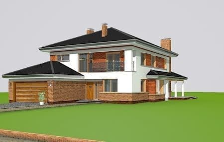 Projekt domu Willa na Borowej to piętrowy dom jednorodzinny dla rodziny cztero-sześcioosobowej, przykryty czterospadowym dachem. Dom jest podmiejską willą o nowoczesnej ale spokojnej architekturze. Zwarta bryła budynku z dobudowanym garażem i dużym zadaszonym podcieniem z tyłu domu, została ciekawie ozdobiona klinkierowymi i drewnianymi okładzinami elewacji, oraz loggiami i podcieniem wejściowym. Masywny ozdobny komin kominka wewnętrznego i zewnętrznego, czy narożne okna - to dodatkowe ozdoby bryły. Wszystkie elementy tworzą spójną, spokojną kompozycyjnie całość. W projekcie domu Willa na Borowej, na parterze zaprojektowano duży salon z jadalnią i holem, z częściowo otwartą kuchnią, oraz dodatkowy pokój - gabinet lub sypialnię gościnną. Na piętrze umieszczono sypialnie, z odrębnym apartamentem rodziców, z własną łazienką, garderobą i balkonem z widokiem na ogród. Na parterze przez szerokie przeszklenia z salonu zaplanowano wyjście do dużego podcienia i na taras ogrodowy. Pracownia posiada wersję odbicia lustrzanego projektu domu Willa na Borowej. Zapraszamy do obejrzenia wszystkich propozycji pracowni MGProjekt z tej serii: https://www.mgprojekt.com.pl/willa-na-borowej, https://www.mgprojekt.com.pl/willa-na-borowej-wariant-b, https://www.mgprojekt.com.pl/willa-na-borowej-wariant-c, https://www.mgprojekt.com.pl/willa-na-borowej-wariant-d, https://www.mgprojekt.com.pl/willa-na-borowej-wariant-e.
