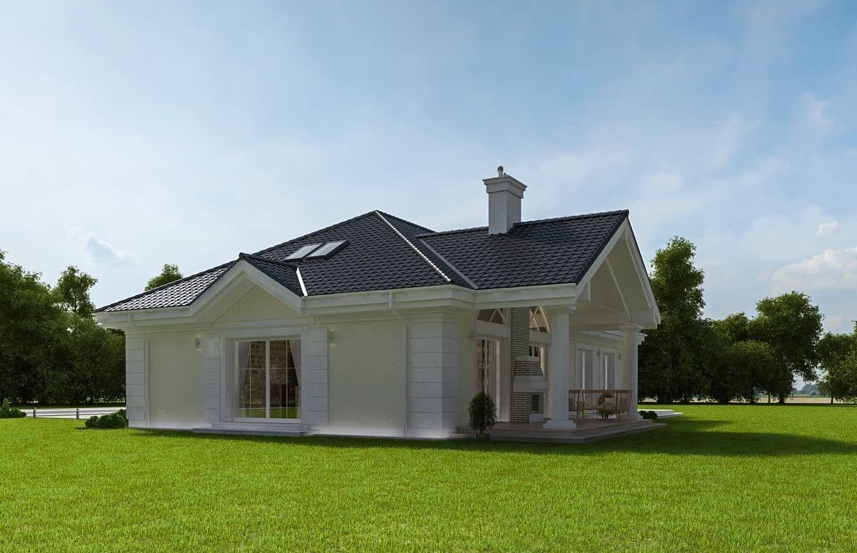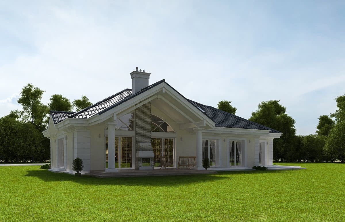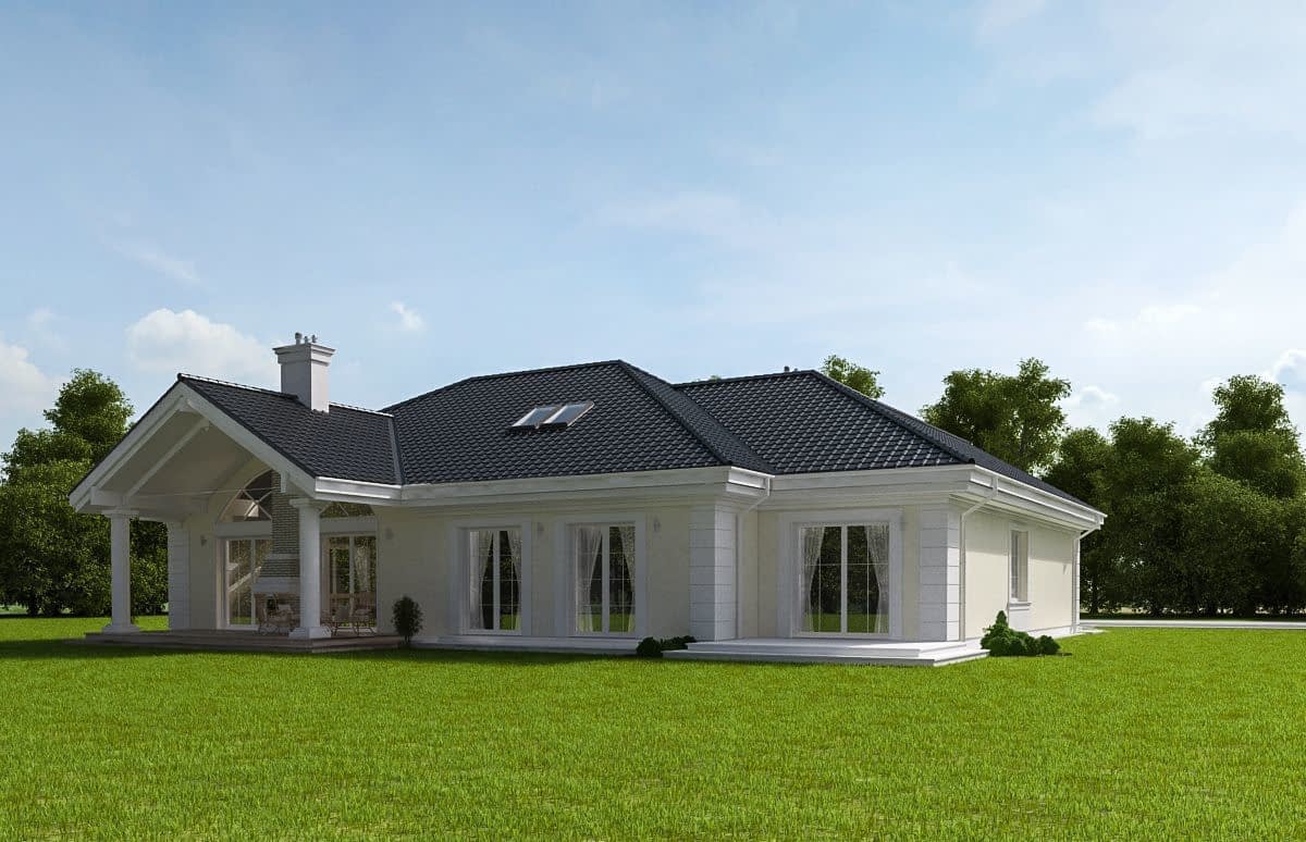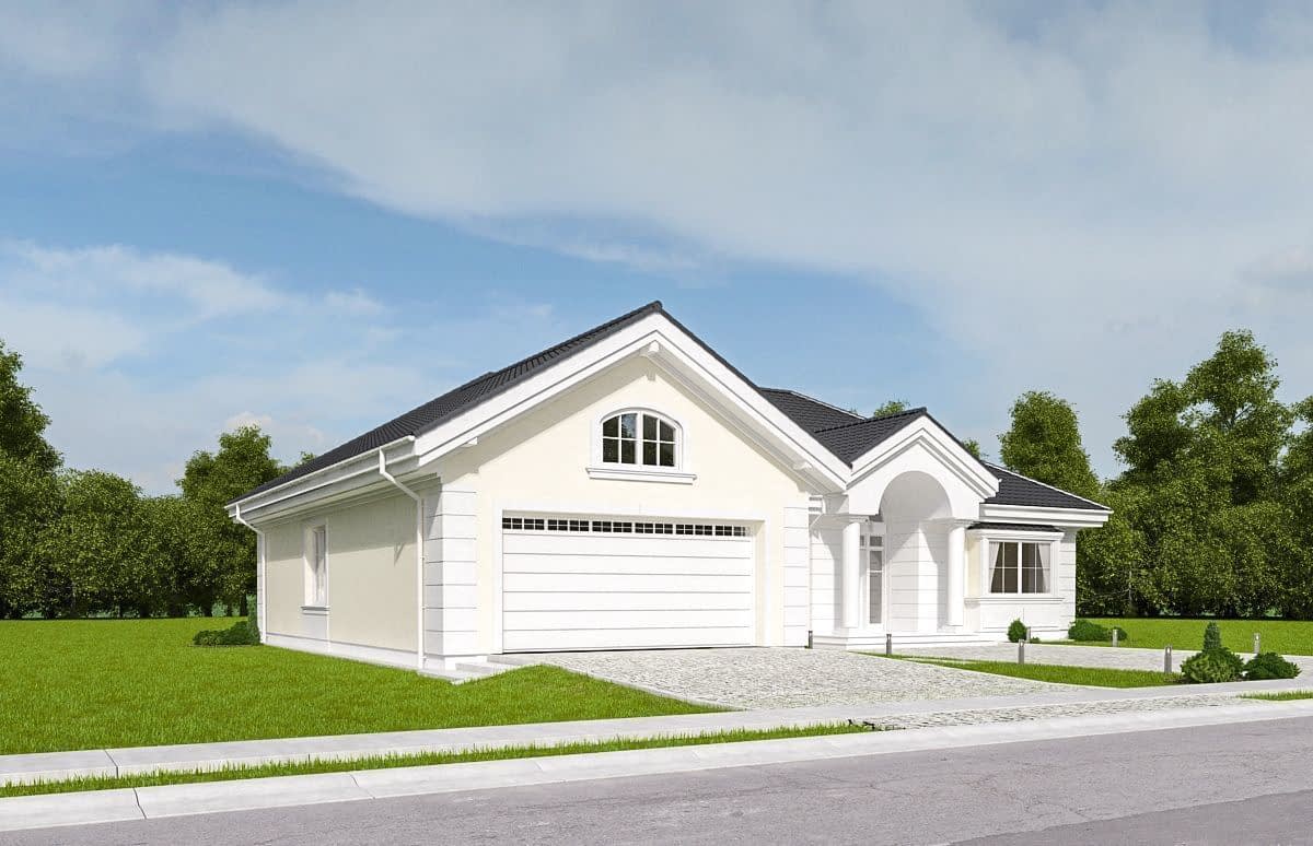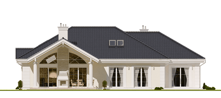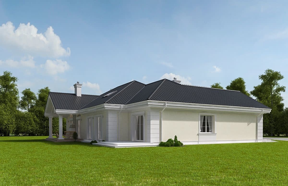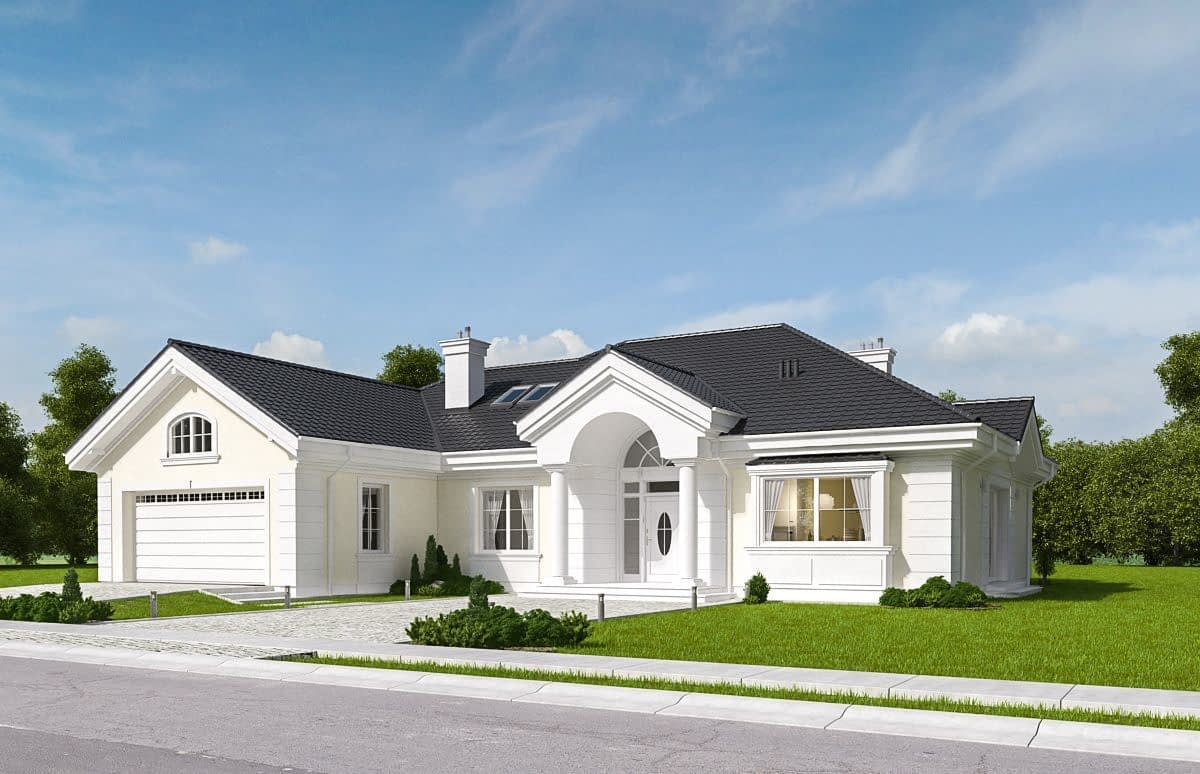 Projekt domu Willa Parkowa to projekt stylowej willi jednorodzinnej, przeznaczonej dla 4-5 osobowej rodziny, parterowej, z niewielkim poddaszem użytkowym.Dom jest kontynuacją projektów domów z serii Rezydencja parkowa, jednak tym razem chociaż projekt Willa Parkowa jest mniejszy - mieści niemal te same funkcje i ilość pomieszczeń, jednak na powierzchni użytkowej parteru 160 m2 plus dwustanowiskowy duży garaż.Rozłożysta bryła projektu Willa Parkowa przykryta wielospadowym dachem łączy główną bryłę, oraz dobudowany garaż od frontu i duży zadaszony taras od strony ogrodowej.Elewację frontową domostwa ozdabia reprezentacyjny portyk wejściowy z kolumnami. Projekt parterowego domu jednorodzinnego Willa Parkowa utrzymany jest w stylistyce podmiejskiej rezydencji. Detale architektoniczne podkreślają klasyczny styl projektu domu Willa Parkowa.Wnętrze Willi Parkowej zaprojektowano nowocześnie i funkcjonalnie. Część dzienna to jednoprzestrzenna powierzchnia uzytkowa salonu, jadalni, holu i kuchni. Nad częścią salonu zaprojektowano otwarcie przestrzenne - pustkę. W domu Willa Parkowa nad salonem przewidziano antresolę. Z holu i salonu widzimy reprezentacyjne zabiegowe schody na poddasze.Drugą część budynku w projekcie domu Willa Parkowa zajmują sypialnie, oddzielone od części dziennej.W tym domu przewidziano również apartament rodziców - z łazienką i garderobą i własnym oddzielnym tarasem, oraz dwie sypialnie dziecięce z łazienką. Na poddaszu zaprojektowano dodatkowy pokój - może to być gabinet, lub jeszcze jedna sypialnia.W części gospodarczej projektanci MGProjekt zaplanowali kotłownię i dwustanowiskowy garaż. Staraliśmy się oszczędnie gospodarować przestrzenią i "wycisnąć" z niej jak najwięcej. Dzięki temu projekt Willa Parkowa to komfortowy, ale jednocześnie ekonomiczny budynek, z którego przyszli domownicy będą dumni. Willa Parkowa to dom, który nie zrujnuje na całe życie kosztami budowy i utrzymania.W projekcie domu Willa Parkowa zostały zastosowane energooszczędne rozwiązania, koszty życia w tej mini-rezydencji będą więc kształtowały się na sensownym poziomie.Zgodnie z kosztorysem MGProjekt projekt Willa Parkowa budowy domu willa parkowa do stanu surowego zamkniętego będzie kosztować 294903 zł.Zapraszamy do obejrzenia wszystkich projektów domów z serii Willa Parkowa: https://www.mgprojekt.com.pl/willa-parkowa, https://www.mgprojekt.com.pl/willa-parkowa-2, https://www.mgprojekt.com.pl/willa-parkowa-3, https://www.mgprojekt.com.pl/willa-parkowa-4, https://www.mgprojekt.com.pl/willa-parkowa-5, https://www.mgprojekt.com.pl/willa-parkowa-6, https://www.mgprojekt.com.pl/willa-parkowa-6-d, https://www.mgprojekt.com.pl/willa-parkowa-7, https://www.mgprojekt.com.pl/willa-parkowa-8-a, https://www.mgprojekt.com.pl/willa-parkowa-8-b, https://www.mgprojekt.com.pl/willa-parkowa-9, https://www.mgprojekt.com.pl/willa-parkowa-10, https://www.mgprojekt.com.pl/willa-parkowa-b, https://www.mgprojekt.com.pl/willa-parkowa-c, https://www.mgprojekt.com.pl/willa-parkowa-d.