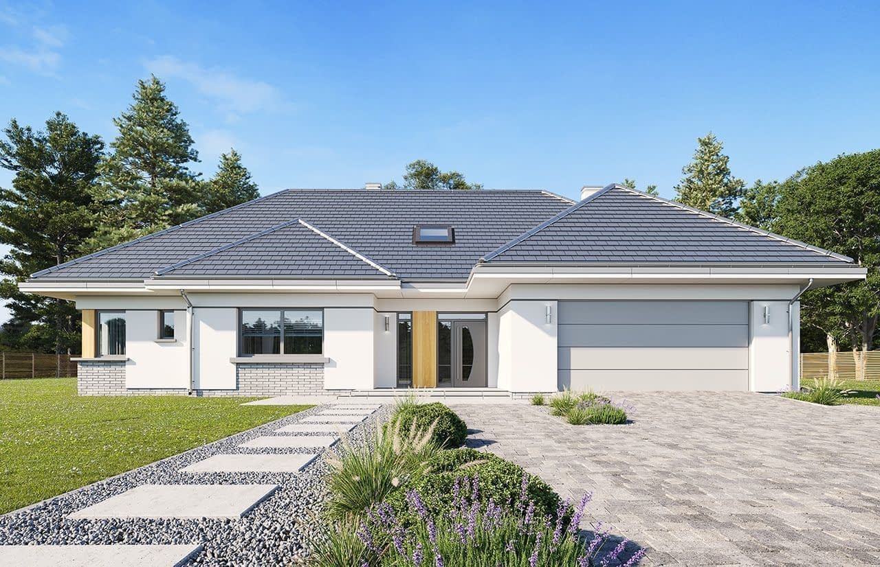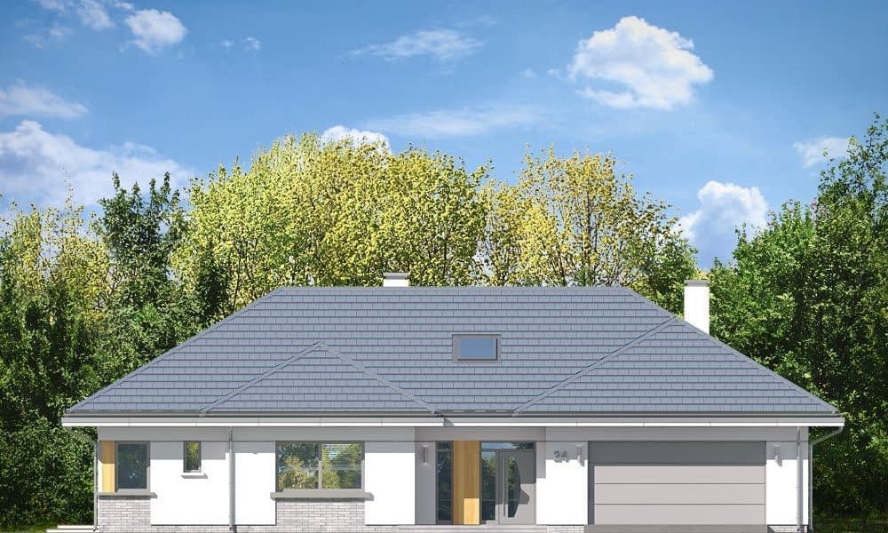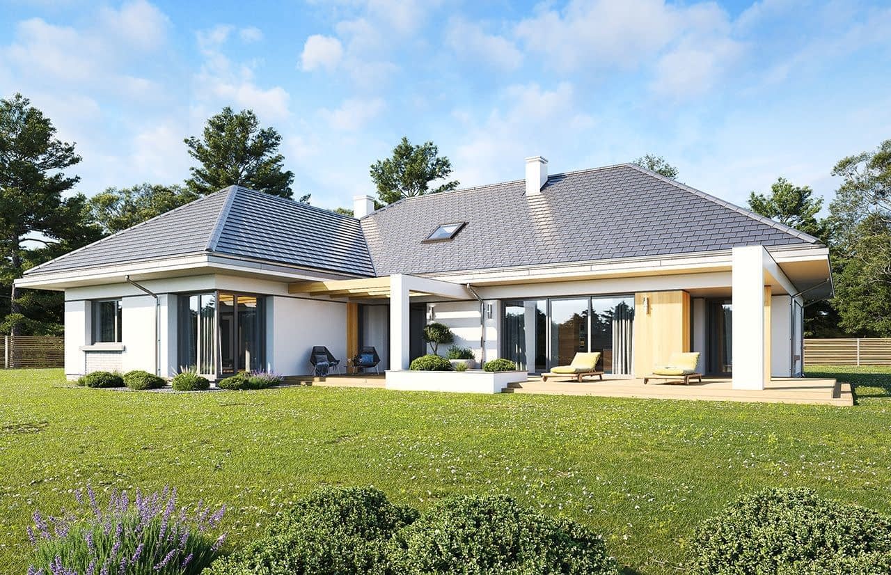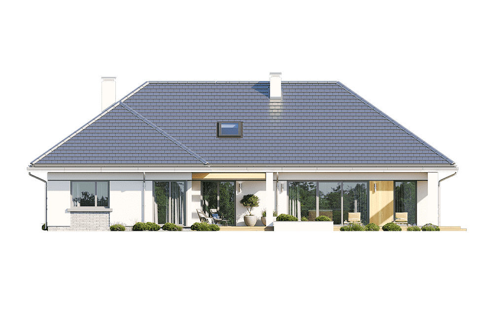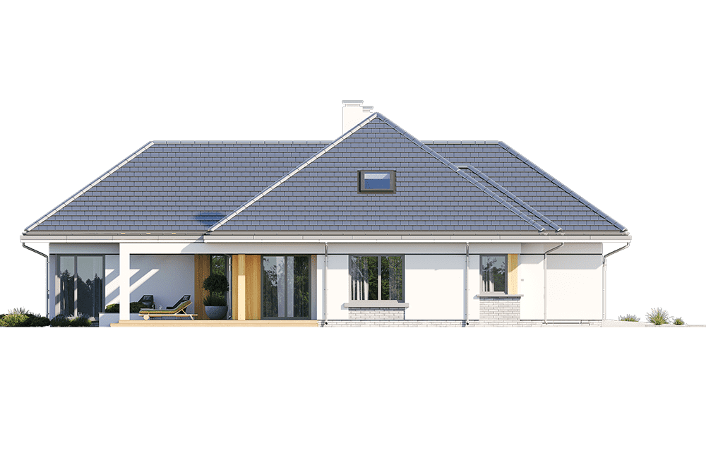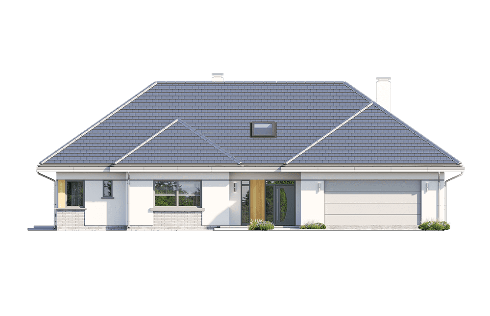 Projekt domu Willa Parterowa to reprezentacyjny, parterowy dom jednorodzinny dla 4-5 osobowej rodziny. Projekt domu Willa Parterowa to prawdziwa komfortowa willa o nieprzeciętnej funkcjonalności przeznaczona dla Inwestorów zdecydowanych żyć na parterze - bez biegania po schodach.Projekt domu Willa ParterowaDom jednorodzinny Willa Parterowa, mimo, że nie jest wielki i jego powierzchnia użytkowa to nieco ponad 170 m2, zaprojektowano z amerykańskim rozmachem. Od samego wejścia Willa Parterowa wita nas szeroka efektowna elewacja frontowa, z pięknie zaakcentowanymi drzwiami wejściowymi. Od strony ogrodowej jest jeszcze lepiej - układająca się w literę "L" bryła domostwa z tarasem – z wewnętrznym patio, częściowym zadaszeniem oraz pergolą. Świetne miejsce na domowe przyjęcia, ale też na spokojny wieczorny relaks dla wszystkich domowników. Budynek Willa Parterowa zaprojektowaliśmy na planie litery "T", z główną prostokątną bryłą przykrytą czterospadowym dachem i dobudowanymi częściami dużego garażu i sypialni.Wnętrze domu Willa ParterowaStyl Willi Parterowej to umiarkowana nowoczesność. Dzięki dużym przeszkleniom, kolorystyce i zastosowanym materiałom budowlanym dom Willa Parterowa wygląda nowocześnie, ale nie ekstrawagancko. Do wnętrza projektu Willa Parterowa wchodzimy przez przedsionek do holu i stamtąd w jedną stronę do części dziennej - z pięknym pokojem dziennym, jadalnią i kuchnią, a w drugą stronę do części nocnej domu. Salon ze ścianą kominkowo – telewizyjną połączony jest z tarasem szerokimi przesuwnymi przeszkleniami. Nad salonem projektu Willa Parterowa zaplanowano otwarcie przestrzenne – pustkę, dzięki której wnętrze domu wydaje się znacznie większe. W wersji domku z zagospodarowanym strychem na poddaszu zaplanowano powyżej balustradę i antresolę. W wersji budynku ze strychem nieużytkowym - po prostu pustkę nad salonem. W jadalni zaplanowano całą ścianę na kredens – rzadko spotykaną wygodę. W kuchni zaprojektowano dużą centralną wyspę, a obok kuchni pomieszczenia spiżarki i pralni - po amerykańsku, Pani domu ma pod ręką wszystkie urządzenia. W części nocnej domu mieści się apartament rodziców z garderobą i łazienką, dwie sypialnie dzieci z szafami wbudowanymi i łazienką, oraz dodatkowy pokój, który może być sypialnią albo gabinetem.Projekt Willa Parterowa - część gospodarczaW gotowym projekcie domu Willa Parterowa, od frontu domu przewidziano jeszcze duży garaż na dwa samochody i kotłownię. Strych budynku Willa Parterowa może pozostać przestrzenią nieużytkową - domowym magazynem rzeczy różnych, albo można go zaadaptować na powierzchnię użytkową, uzyskując tym samym dodatkowe 35 m2.Projekt domu Willa Parterowa - budowaGotowy projekt domu jednorodzinnego Willa Parterowa to dzięki optymalnie dobranym materiałom budowlanym i izolacji budynek energooszczędny. Dzięki temu będzie niedrogi w użytkowaniu przez domowników. Konstrukcja domu Willa Parterowa jest nieskomplikowana, więc koszty budowy domu Willa Parterowa są niskie. Według naszych kosztorysantów koszt budowy domu Willa Parterowa to 343971 zł za stan surowy zamknięty, a koszty budowy za stan pod klucz to 695 tys zł. Projekt Willa Parterowa to świetna propozycja dla Inwestorów marzących o kontakcie z ogrodem i przyrodą, o komfortowym domostwie na jednej podłodze - bez chodzenia po schodach. Z pewnością dom jednorodzinny Willa Parterowa przeznaczony jest dla osób mających trochę większą działkę o wymiarach min 24,75x24,84m i powierzchni minimum 700-800 m2.