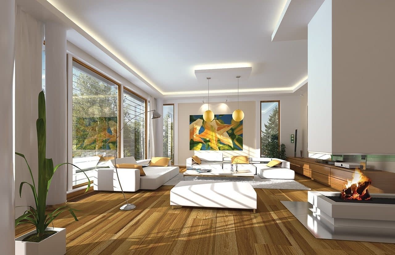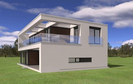 Projekt domu Willa Słoneczna to nowoczesna miejska willa. Dom przeznaczony jest dla cztero-sześcioosobowej rodziny. Nowoczesna piętrowa forma z płaskim dachem, została połączona z funkcjonalnym przemyślanym wnętrzem. Zasada kompozycji bryły budynku polega na maksymalnym otwarciu wnętrza domu na ogród, przy jednoczesnej minimalnej ekspozycji od strony frontowej. Elewacja frontowa, z niewielką ilością okien, z dużą białą powierzchnią ścian, jest przeciwieństwem otwartej, przeszklonej elewacji ogrodowej, urozmaiconej podcieniami i tarasami. Taki układ pozwala też na maksymalne wykorzystanie naturalnego nasłonecznienia i jednocześnie podwyższenie energooszczędności budynku. Wzajemnie przenikające się pełne białe ściany, z dużymi przeszklonymi powierzchniami, oraz drewnianymi okładzinami, wprowadzają ostre kontrasty w elewacjach domu. Siatka podciągów od strony ogrodu zamyka prostopadłościenną bryłę i jednocześnie stanowi naturalną osłonę przed nadmiernym nasłonecznieniem wnętrza. Od frontu - parterowy garaż z wjazdem z bocznego wewnętrznego dziedzińca łagodzi masywną piętrową sylwetkę domu. Wnętrze składa się z części dziennej na parterze, oraz sypialni na piętrze. Wariantowo w projekcie domu Willa Słoneczna zaplanowano częściowe podpiwniczenie z domowym spa i centrum rekreacji. Na parterze zaprojektowano jednoprzestrzenne, otwarte na ogród wnętrze połączonego salonu, jadalni, holu, oraz półotwartej kuchni. Dodatkowo mieści się tam pokój - np. gabinet, łazienka, oraz garaż i kotłownia. Pięknymi ażurowymi schodami kierujemy się z holu na piętro, gdzie zaplanowano apartament rodziców - z własną łazienką, garderobami i tarasem, sypialnie dziecięce z łazienką i dodatkowy zapasowy pokój. Oryginalne rozwiązania wnętrz, ciekawe detale, nowoczesna forma architektoniczna dadzą przyszłym użytkownikom niekłamaną przyjemność z posiadania takiego domu. Pracownia posiada projekt domu Willa Słoneczna w wersji z podpiwniczeniem lub bez piwnicy, oraz w odbiciu lustrzanym.
