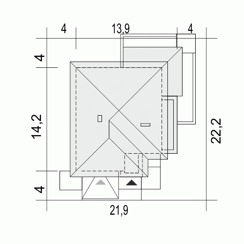 - Minimalne wymiary działki22.2 x 21.9m
