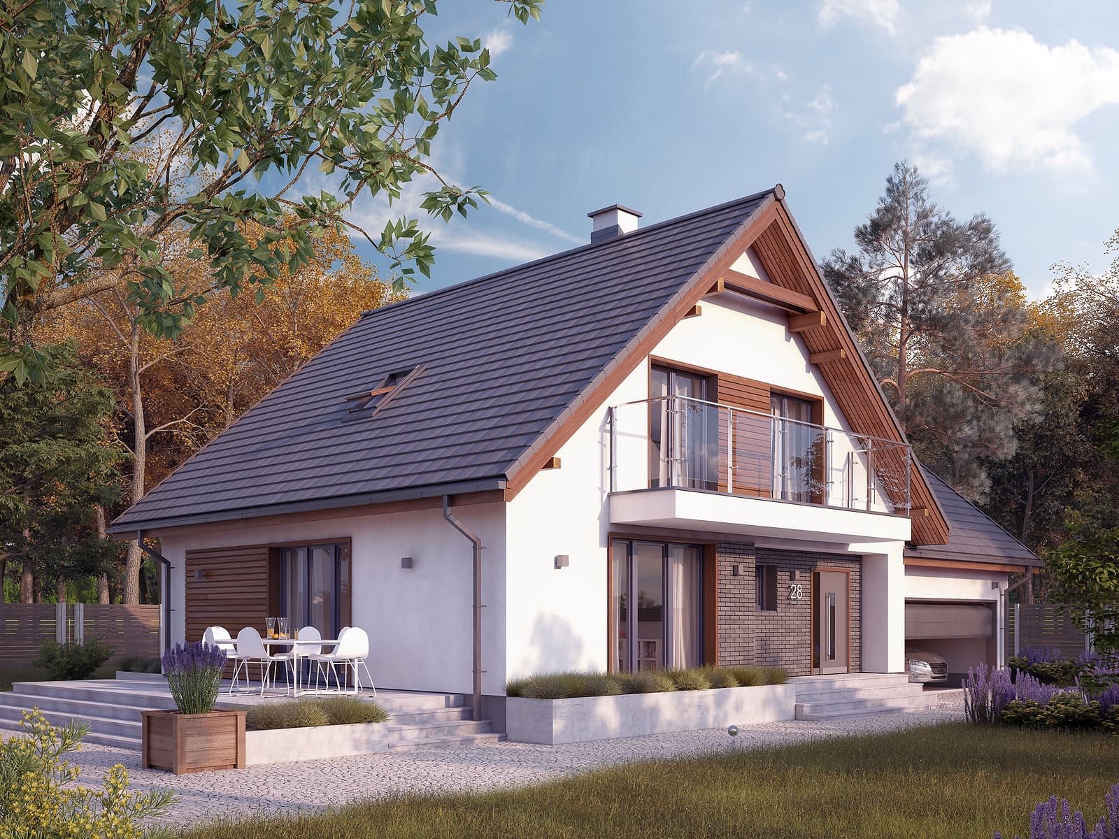 Wolta 3 to praktyczny dom jednorodzinny z użytkowym poddaszem i dwustanowiskowym garażem wkomponowanym w bryłę budynku. Na parterze znajduje się część dzienna z przestronnym salonem połączonym z jadalnią i kuchnią. Dodatkowo zaprojektowano wygodny wiatrołap, łazienkę oraz przejście do garażu i kotłowni. Praktycznym rozwiązaniem jest także umiejscowienie na parterze pokoju gościnnego. Strefa nocna została zlokalizowana na poddaszu, znajdują się tu trzy sypialnie, łazienka i garderoba. Na półpiętrze nad garażem znajduje się pokój do zagospodarowania pod sypialnię lub strych.Konstrukcja