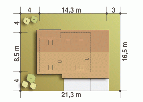 - Minimalne wymiary działki16.5 x 21.3m
