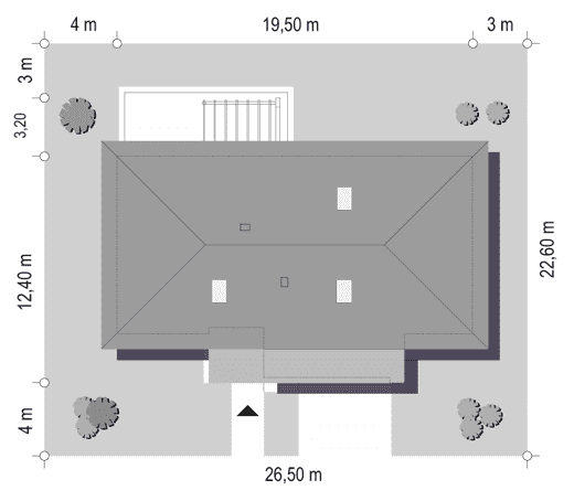 Projekt domu Wymarzony 6 to kolejny projekt z serii domów „Wymarzonych” z naszej pracowni. Dom parterowy, z poddaszem do zagospodarowania, zbudowany na planie prostokąta, z wystającą na froncie częścią garażową, przykryty czterospadowym dachem o kącie nachylenia 30 stopni. Projekt domu Wymarzony 6 ma nowoczesną stylistykę i łączy tradycyjną bryłę z klasycznym dachem, z nowoczesnymi materiałami wykończeniowymi i detalami. Połączenie białych tynkowanych ścian z okładzinami imitującymi beton, oraz szarą lub grafitową dachówką dają elegancki i reprezentacyjny wygląd budynku. Dom mimo niewielkiej powierzchni sprawia wrażenie bardzo komfortowego i większego niż jest w rzeczywistości. Głównymi detalami stylistycznymi projektu są : wystające garaż i podcień wejściowy,oraz reprezentacyjne drzwi frontowe z naświetlami. Od strony ogrodowej mamy duże przeszklenia otwierające salon na taras i ogród, oraz pergolę przykrywającą część tarasu. Wnętrze :inna niż przeważnie lokalizacja garażu, w centralnej części bryły, ułatwia komunikację między garażem, przedsionkiem i kotłownią, co jest rzadko spotykane w domach parterowych o prostokątnym kształcie. Garaż jest w świetnym miejscu - przy wejściu, blisko holu,kuchni i spiżarni. Z przedsionka wchodzimy do holu i na wprost do pokoju dziennego. Salon doświetlony jest z dwóch stron - od ogrodu szerokimi drzwiami tarasowymi, oraz z szczycie budynku. Atrakcją salonu jest pustka nad salonem z antresolą na poddaszu, powiększająca przestrzeń dzienną wizualnie. Z drugiej strony domu mamy cztery pokoje, łazienkę i garderobę. Nad parterem zaprojektowano poddasze, z antresolą nad salonem powiększającą jego przestrzeń, oraz dodatkową powierzchnię poddasza, która może pozostać strychem nieużytkowym (magazynem domowym), lub może być zagospodarowana na pokoje użytkowe - według życzenia i potrzeb właścicieli. Projekt domu Wymarzony 6 to komfortowa, wygodna willa dla cztero- sześcioosobowej rodziny - funkcjonalna i praktyczna. Budynek jest energooszczędny, ma prostą konstrukcję, będzie łatwy w budowie i tani w utrzymaniu. Zapraszamy do zapoznania się z pełną ofertą pracowni MG Projekt tej serii: Wymarzony, Wymarzony 2, Wymarzony 3, Wymarzony 4, Wymarzony 5, Wymarzony 7, Wymarzony 8, Wymarzony 9, Wymarzony 10, Wymarzony 11.
