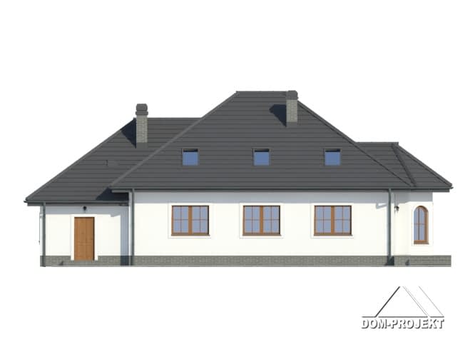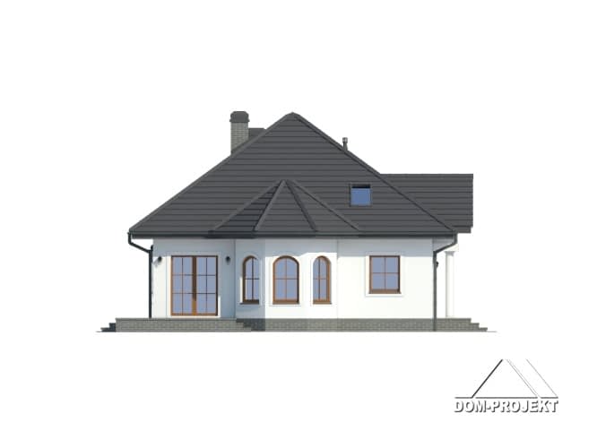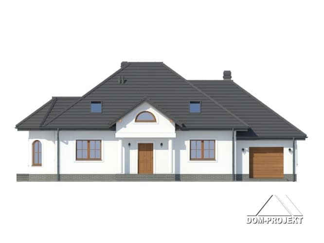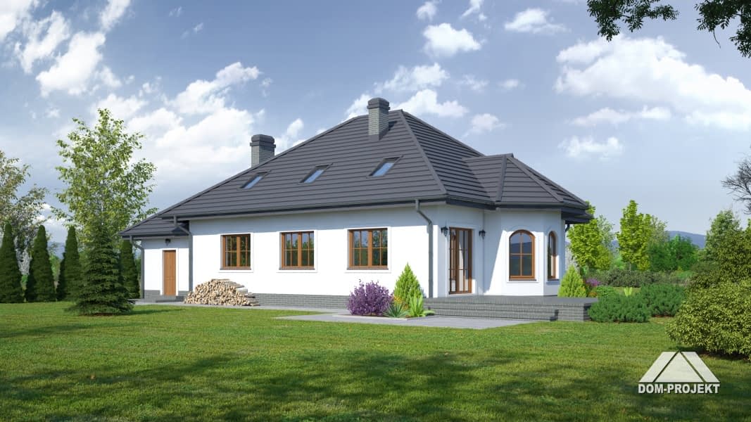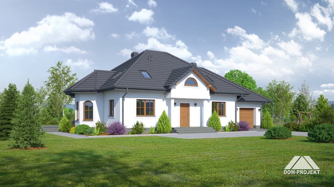 Przestronny dom z dobudowaną częścią gospodarczą. Schody na parterze wychodzą z wiatrołapu dzięki czemu poddasze może stanowić odrębne mieszkanie. Ciekawa architektura urozmaicona wykuszem, który jest ozdobą elewacji i miejscem na jadalnię.Rzuty