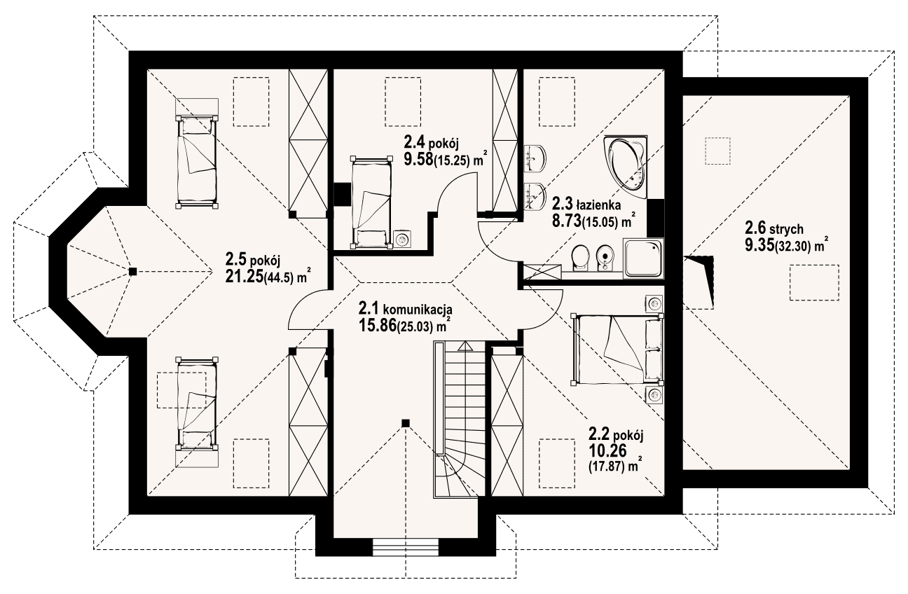 - KondygnacjeParterowy, z poddaszem