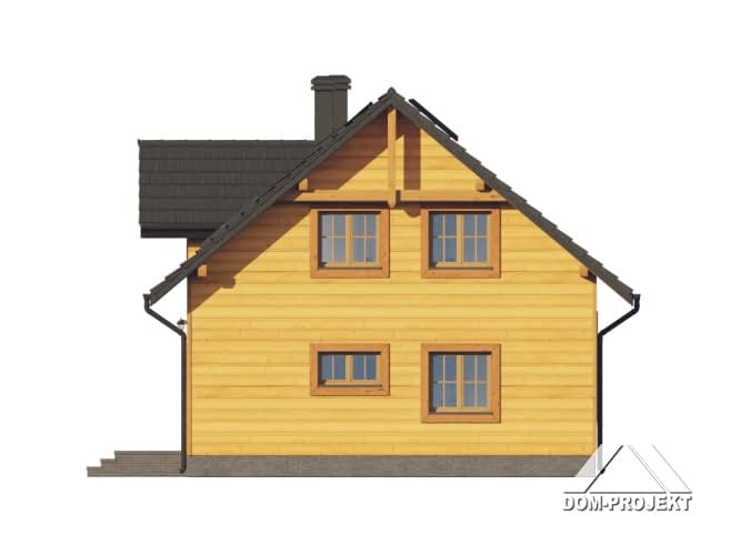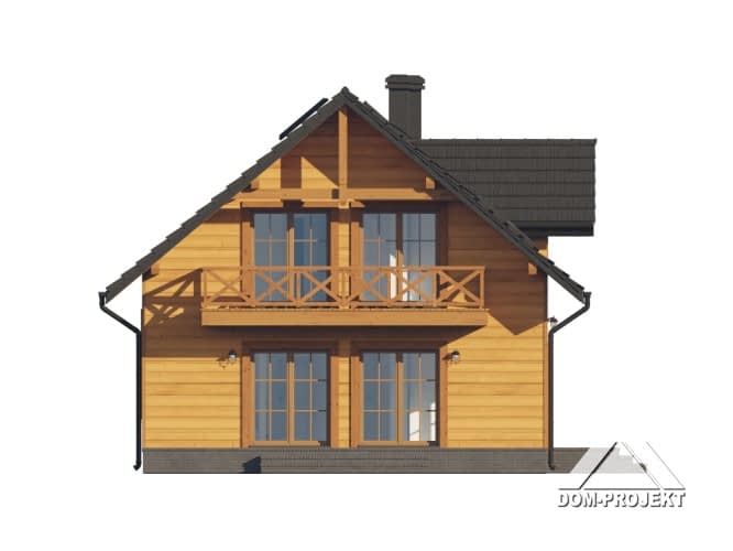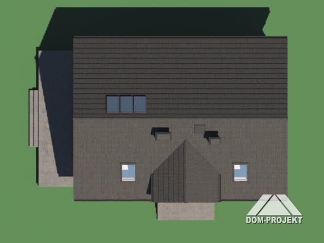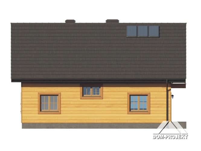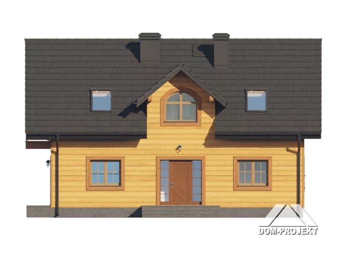 Dom w konstrukcji szkieletu drewnianego. Na parterze duży salon z aneksem kuchennym, kominkiem oraz wyjściami na taras. Pokój, łazienka, kotłownia, wiatrołap. Na poddaszu cztery pokoje, łazienka, komunikacja oraz balkon dostępny z dwóch pokoi. Zwarta bryła budynku oraz dach dwuspadowy sprzyjają szybkiej i taniej budowie oraz niskim kosztom eksploatacji.Rzuty