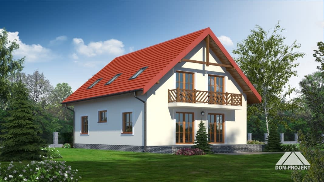 Dom z poddaszem użytkowym. Na parterze przestronny salon tworzy wspólną przestrzeń z aneksem kuchennym . W salonie kominek z możliwością rozprowadzenia ciepła. Na parterze także pokój oraz wydzielona kotłownia. Na poddaszu cztery sypialnie i łazienka.Rzuty