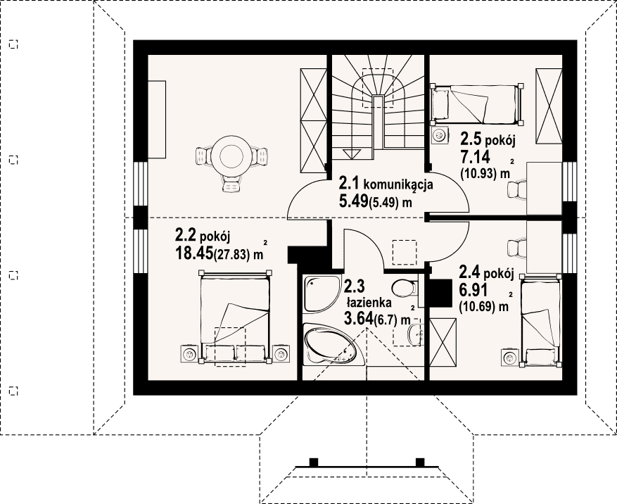 - KondygnacjeParterowy, z poddaszem