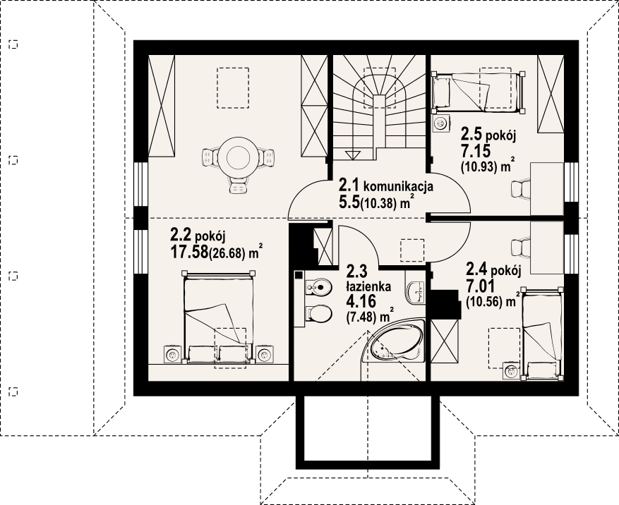 - KondygnacjeParterowy, z poddaszem
