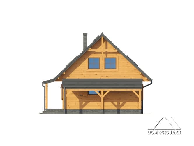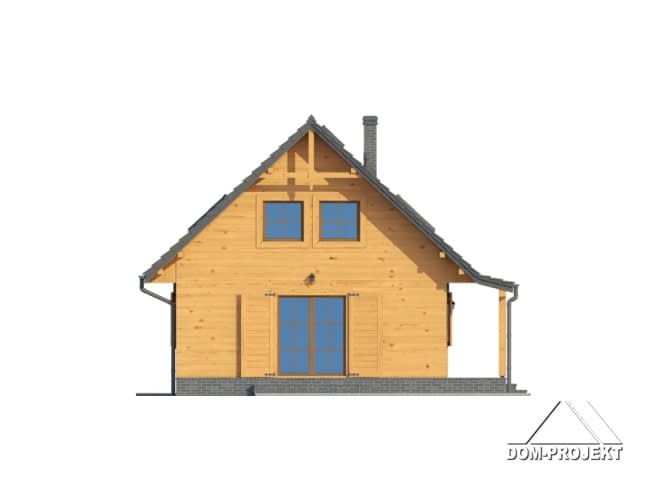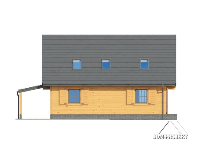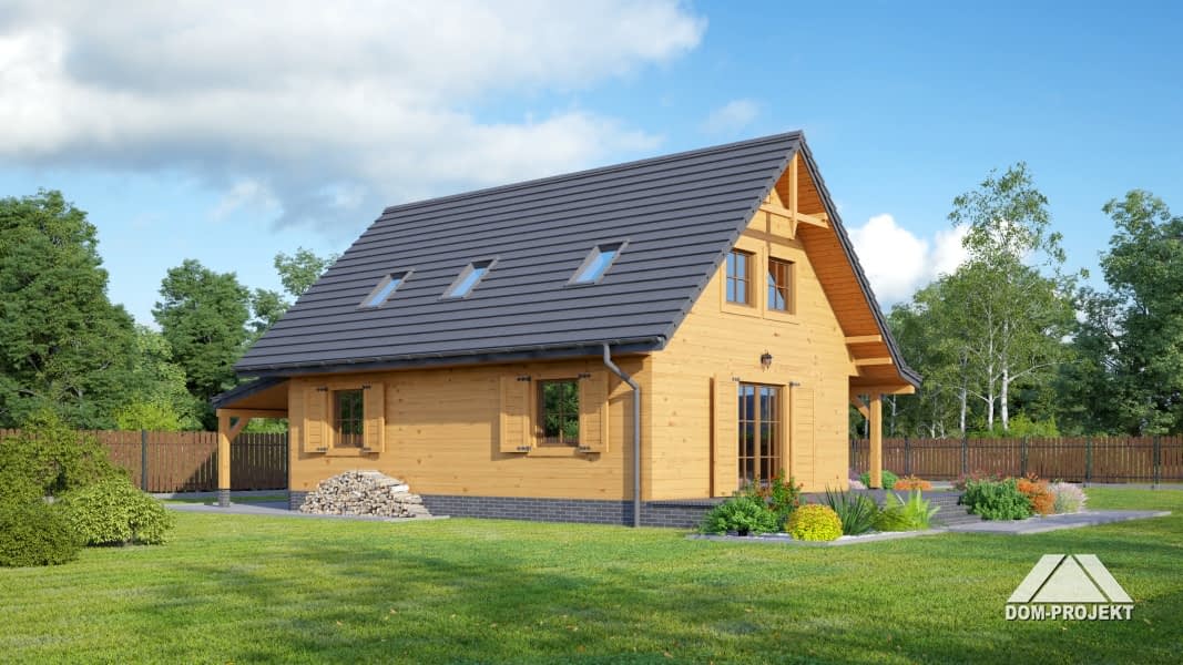 Dom w konstrukcji szkieletu drewnianego. Duży salon z aneksem kuchennym, wyjściem na taras i schodami na poddasze. Pokój, łazienka, wiatrołap i kotłownia. Na poddaszu trzy pokoje, łazienka i komunikacja. Zwarte bryła budynku i dach dwuspadowy sprzyjają szybkiej i taniej budowie i niskim kosztom eksploatacji.Rzuty