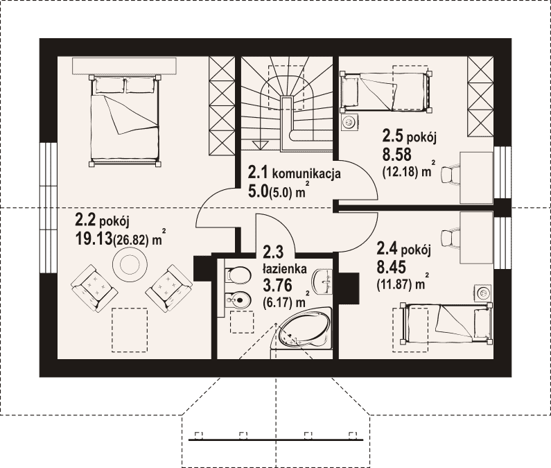- KondygnacjeParterowy, z poddaszem