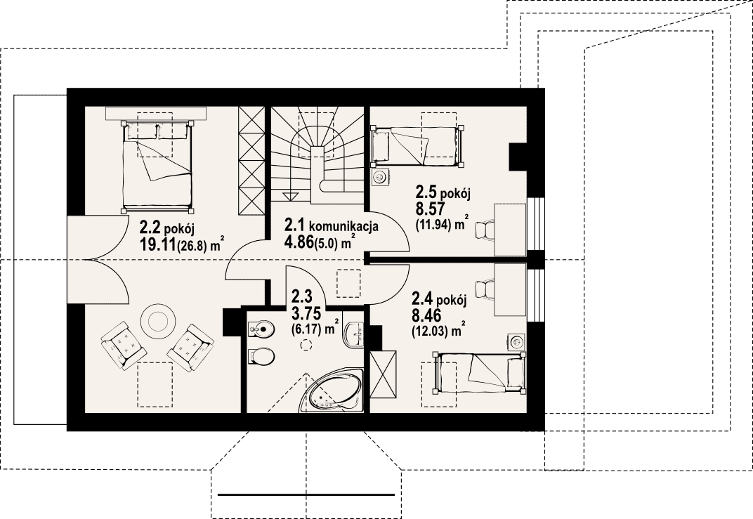 - KondygnacjeParterowy, z poddaszem