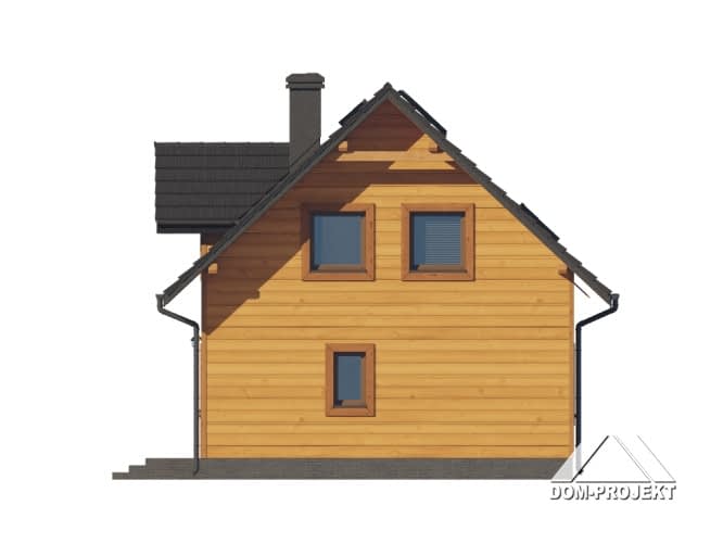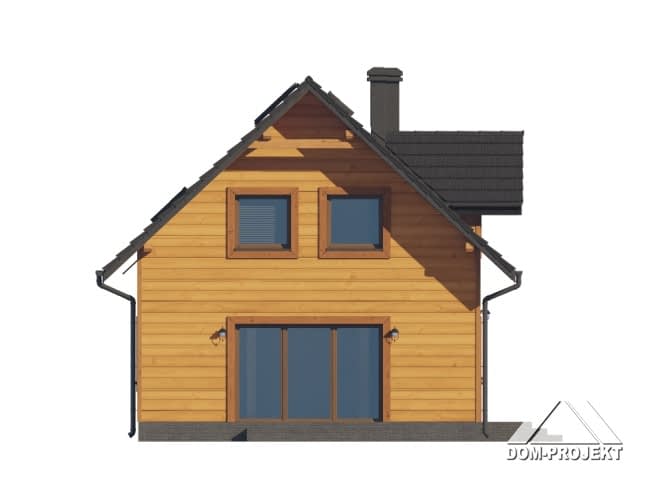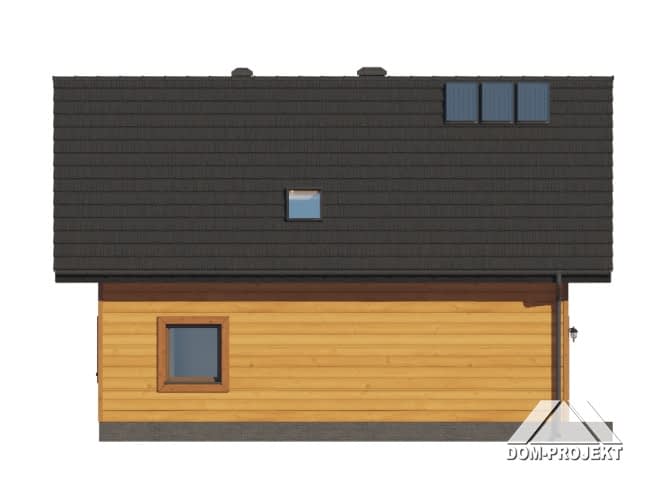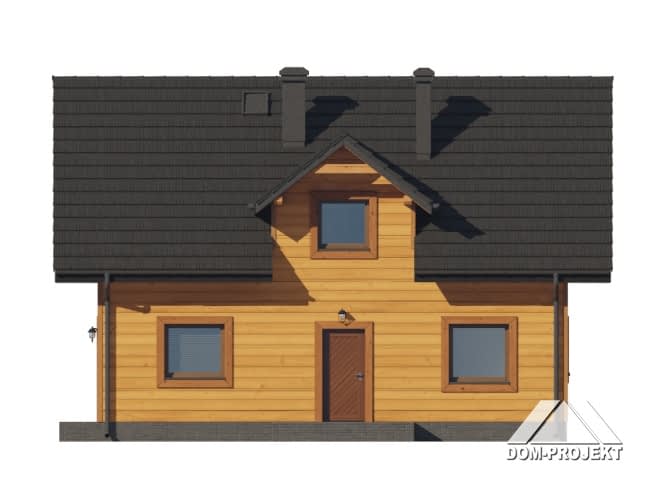 Dom w konstrukcji szkieletu drewnianego. Na parterze salon z aneksem kuchennym, kominkiem, wyjściem na taras i schodami na poddasze. Pokój do pracy, łazienka, kotłownia, wiatrołap. Na poddaszu cztery sypialnie, łazienka, komunikacja. Zwarta bryła budynku oraz dach dwuspadowy sprzyjają szybkiej i taniej budowie oraz niskim kosztom eksploatacji.Rzuty