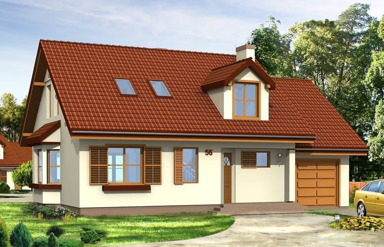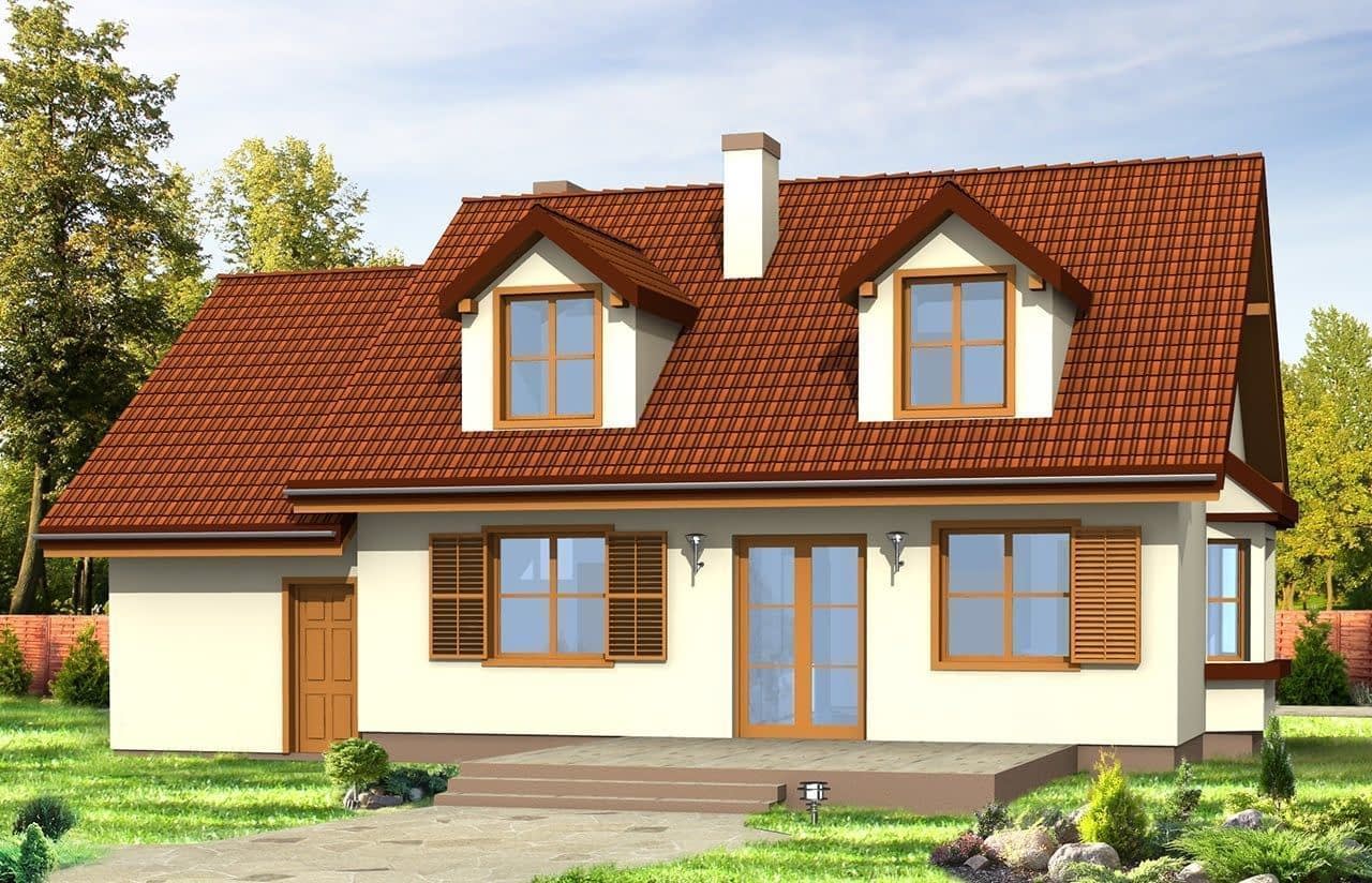Projekt domu Zgrabny z lukarnami jest odpowiedni dla rodziny cztero-pięcioosobowej. Powstał jako wariantowa wersja projektu Zgrabny. Prosty dwuspadowy dach został urozmaicony dużymi lukarnami z przodu i z tyłu domu. Na parterze domu Zgrabny z lukarnami oprócz salonu zaprojektowano dodatkowy pokój i łazienkę. Na poddaszu mieszczą się trzy sypialnie, duża łazienka i strych nad garażem. Projekt domu Zgrabny z lukarnami charakteryzuje się reprezentacyjną architekturą i funkcjonalnymi wnętrzami. Pracownia posiada również wersję projektu w odbiciu lustrzanym oraz inne jego wersje: projekt domu Zgrabny, projekt domu Zgrabny 2, projekt domu Zgrabny 3, projekt domu Zgrabny 4, projekt domu Zgrabny 5, projekt domu Zgrabny z przedsionkiem. Zapraszamy!