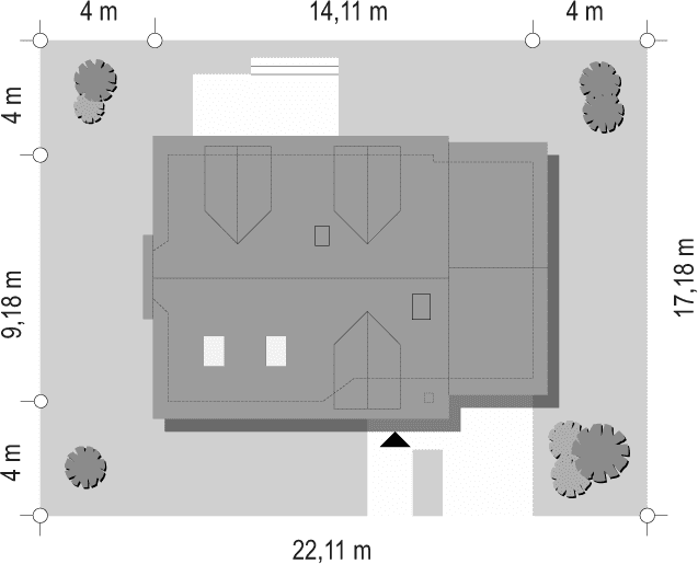 - Minimalne wymiary działki17.18 x 22.11m
