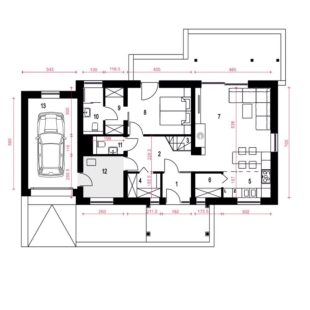 Projekt w fazie koncepcji dostępny z wydłużonym terminem realizacji. Przy zamówieniu ustalamy termin i pobieramy zadatek 50% podstawowej ceny projektu (jako koszty usługi przygotowania dokumentacji do standardu projektu gotowego, w przypadku rezygnacji z usługi, zadatek nie podlega zwrotowi).