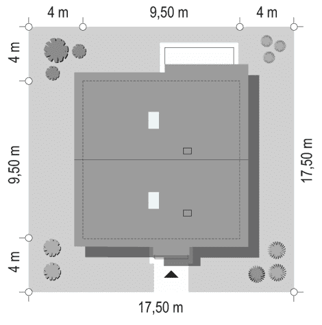 - Minimalne wymiary działki17.5 x 17.5m
