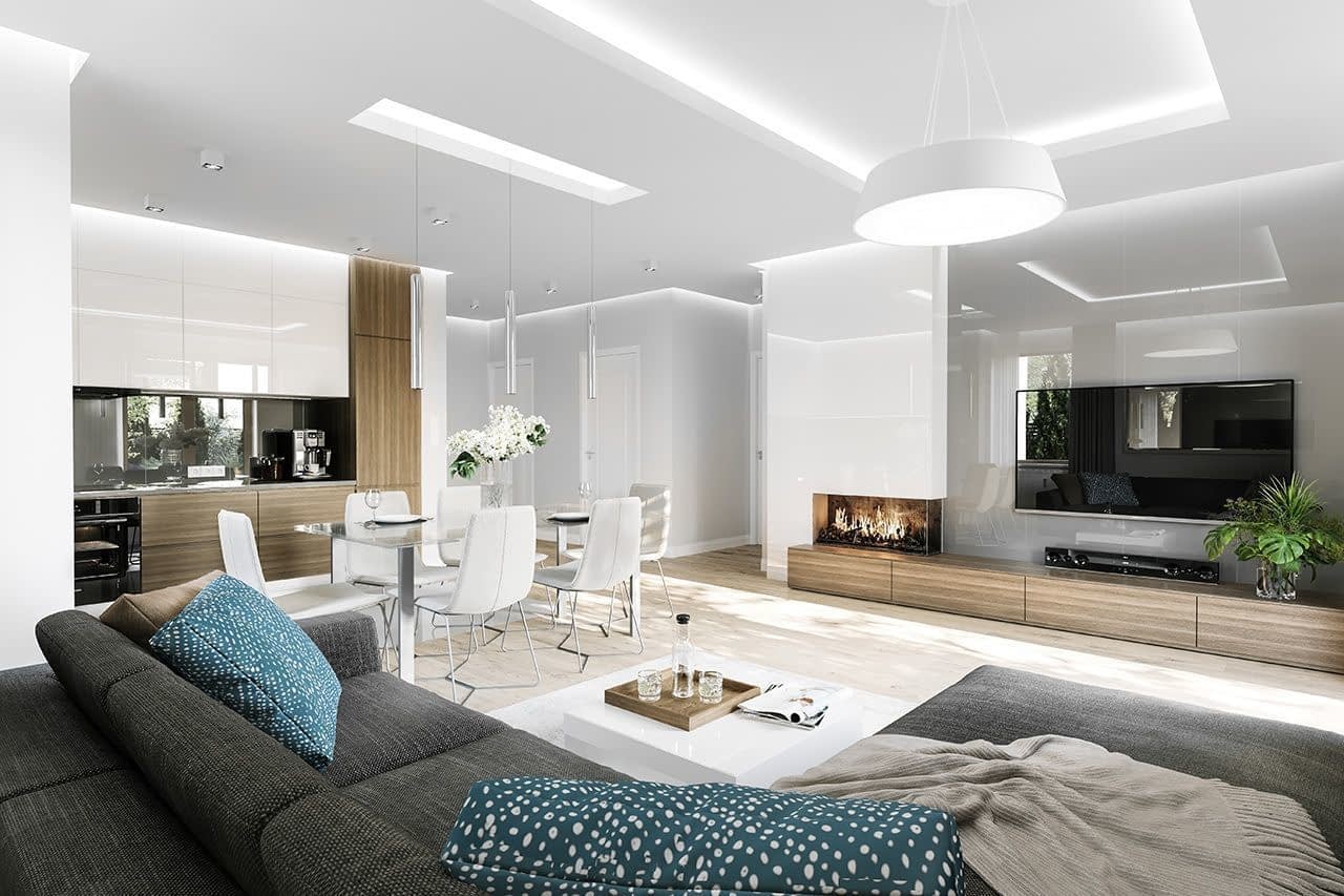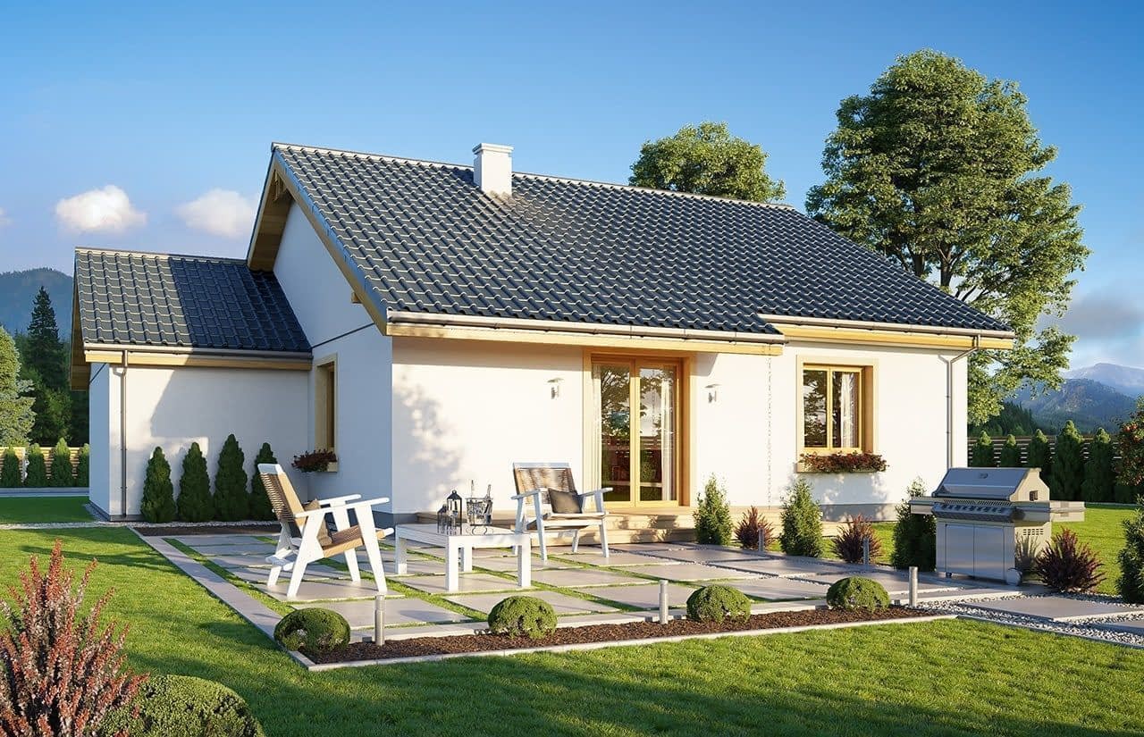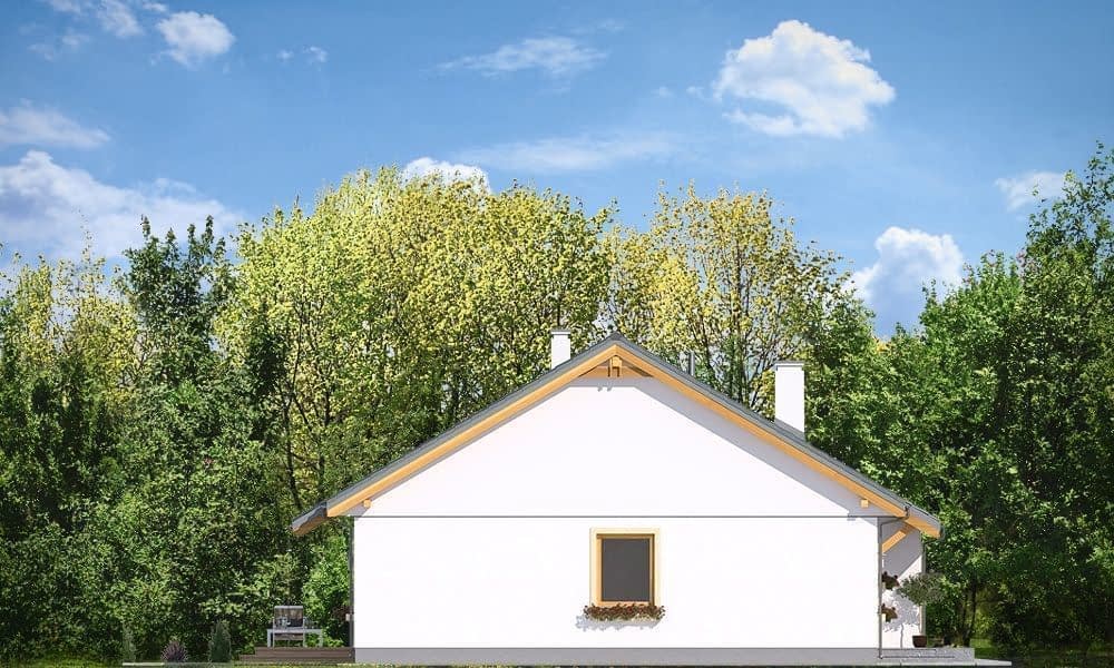 Projekt domu Zosia 8 – czyli kolejny projekt z serii „Zosia” – wersja powiększona w stosunku do bazowego projektu, zbudowaną na kwadratowym planie o wymiarach 10,7 x 10,7 m, z dodatkowym garażem. Dom ma prostą bryłę i konstrukcję, i spokojną bezpretensjonalną architekturę. Budynek dzięki swojej prostocie jest łatwy w budowie, a przez to niedrogi. Jednocześnie projekt domu Zosia 8 spełnia wymagania komfortowego mieszkania dla czteroosobowej rodziny. Dom wieńczy dwuspadowy dach o kącie 30 stopni. Nad parterem przewidziano strop drewniany belkowy i krokwiową więźbę dachową, co tworzy dużą przestrzeń strychową, na którą dostajemy się schodkami drabinkowymi. Do domu wchodzimy przez przedsionek z dużą szafą do holu i salonu. Z boku przy wejściu przechodzimy do kotłowni i dalej do garażu. Kotłownia została przewidziana w projekcie jako gazowa, ale łatwo można ją przerobić na kotłownię na paliwo stałe.Dalej mamy łazienkę, a następnie przestrzeń dzienną z salonem i aneksem kuchennym - o łącznej powierzchni około 35 m2. Z lewej strony mamy trzy sypialnie, w tym sypialnię rodziców z garderobą Z salonu wydostajemy się do ogrodu i na taras. Strych nad parterem można przeprojektować na poddasze użytkowe, dodając schody na górę. Dom jest bardzo funkcjonalny i ma rozbudowany program pomieszczeń. Nie ma tutaj zmarnowanej przestrzeni - wszystko jest praktycznie wykorzystane. Dom ma bezpretensjonalną i przyjemną dla oka stylistykę. Zdecydowaną zaletą domków z serii „Zosia” jest ich prostota i funkcjonalność, przekładające się na maksymalny efekt inwestycji uzyskany za niewielkie pieniądze. Każdą kolejną wersję domu z tej serii staramy się projektować jeszcze lepiej i sensowniej. Dom Zosia 8 jest zaprojektowany jako energooszczędny, bardzo dobrze ocieplony. Będzie dzięki temu tani w późniejszej eksploatacji. Zachęcamy do zapoznania się z pełną ofertą pracowni MG Projekt tej serii: projekt domu Zosia, projekt domu Zosia 2, projekt domu Zosia 3, projekt domu Zosia 4, projekt domu Zosia 5, projekt domu Zosia 6, projekt domu Zosia 7, projekt domu Zosia 7B. Zapraszamy!