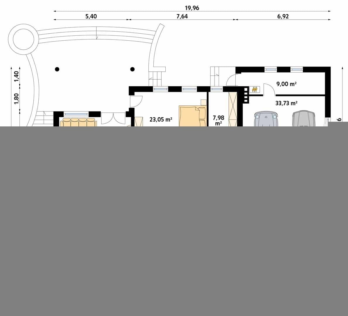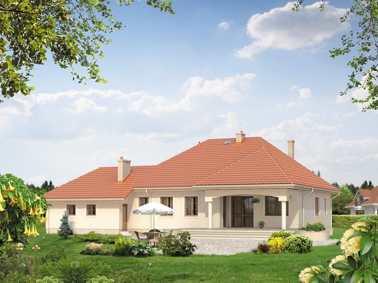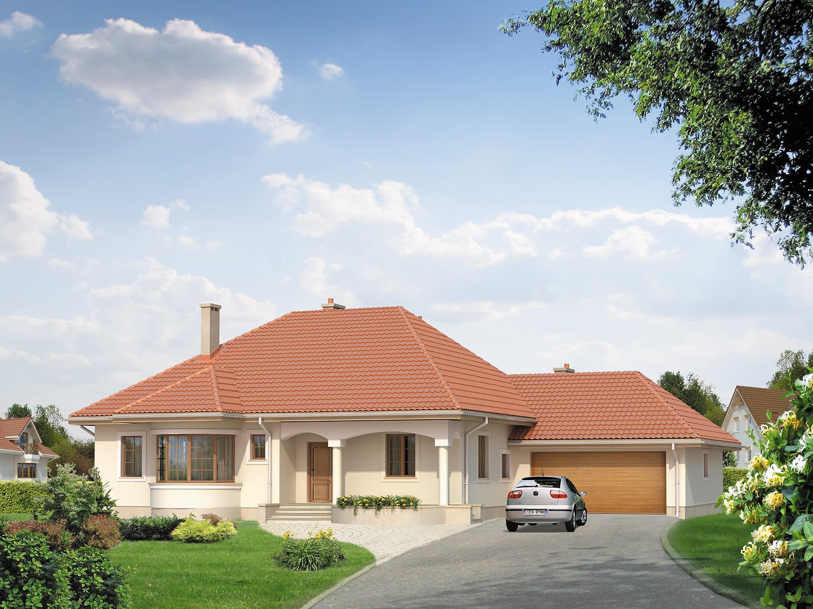 Dom jednorodzinny przeznaczony dla 3 – 4-osobowej rodziny. W części dziennej zaprojektowano salon z jadalnią, kuchnię ze spiżarnią. W części nocnej pokój, sypialnia z garderobą oraz dwie przestronne łazienki. Duży garaż dwustanowiskowy.Konstrukcja