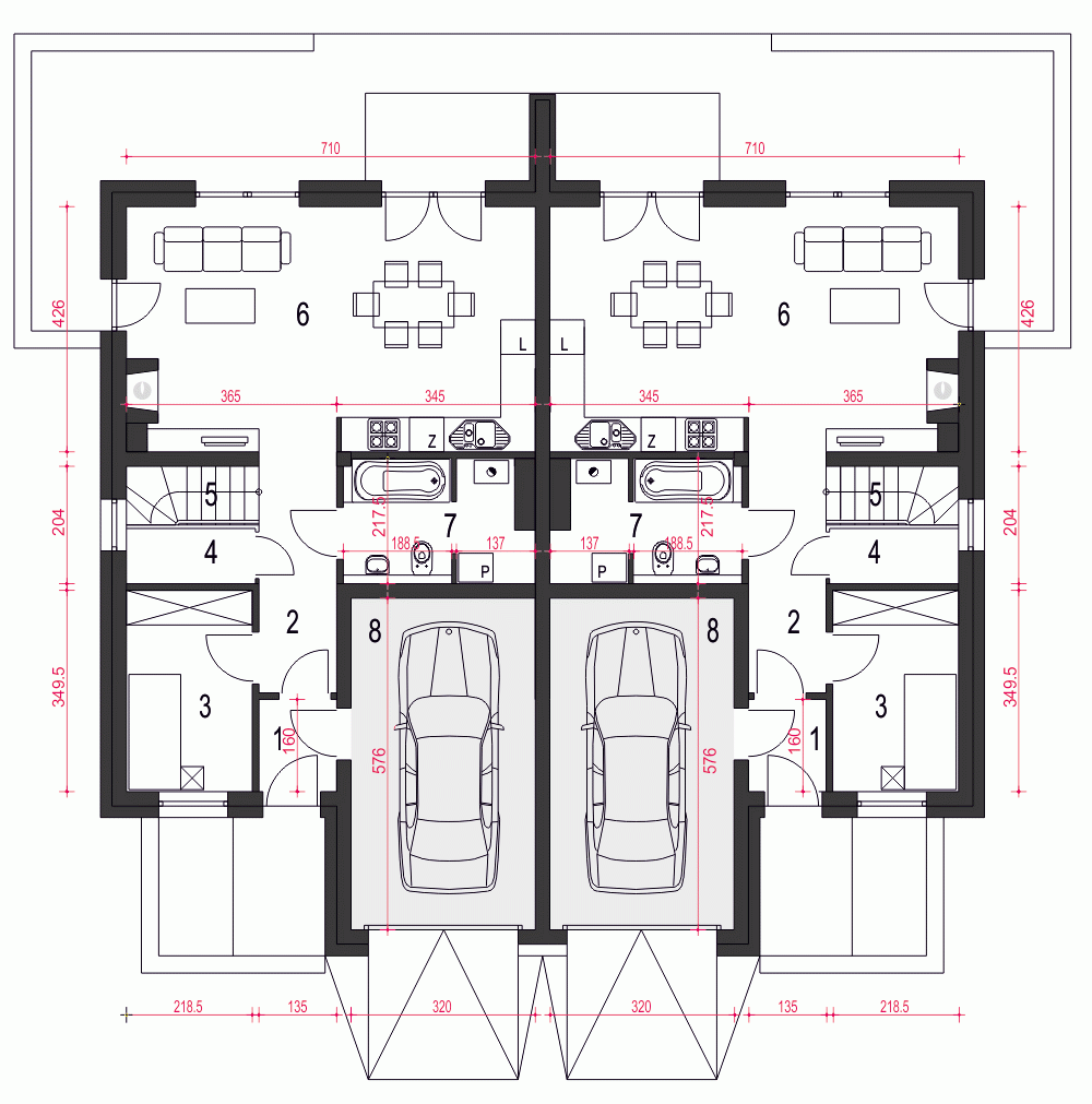 (Uwaga: projekty typu bliźniak oferujemy jako domy dwulokalowe, projekt można zamówić również w zabudowie bliźniaczej)Zyta to elegancki projekt domu piętrowego przeznaczonego dla dwóch rodzin.